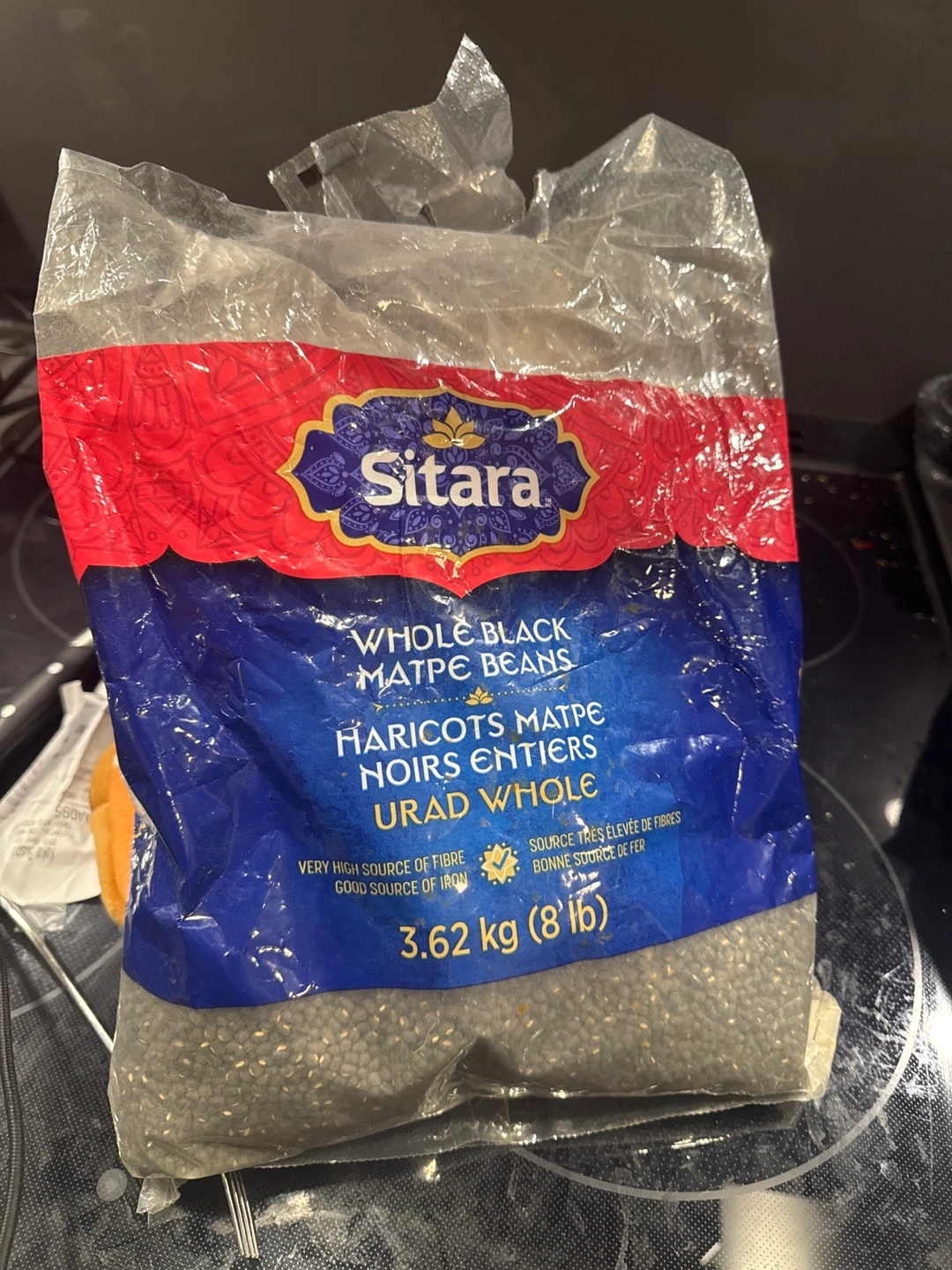 Selling a bag of Sitara Whole Black Matpe Beans! These beans are a very high source of fibre and a good source of iron, so they're a healthy choice too.