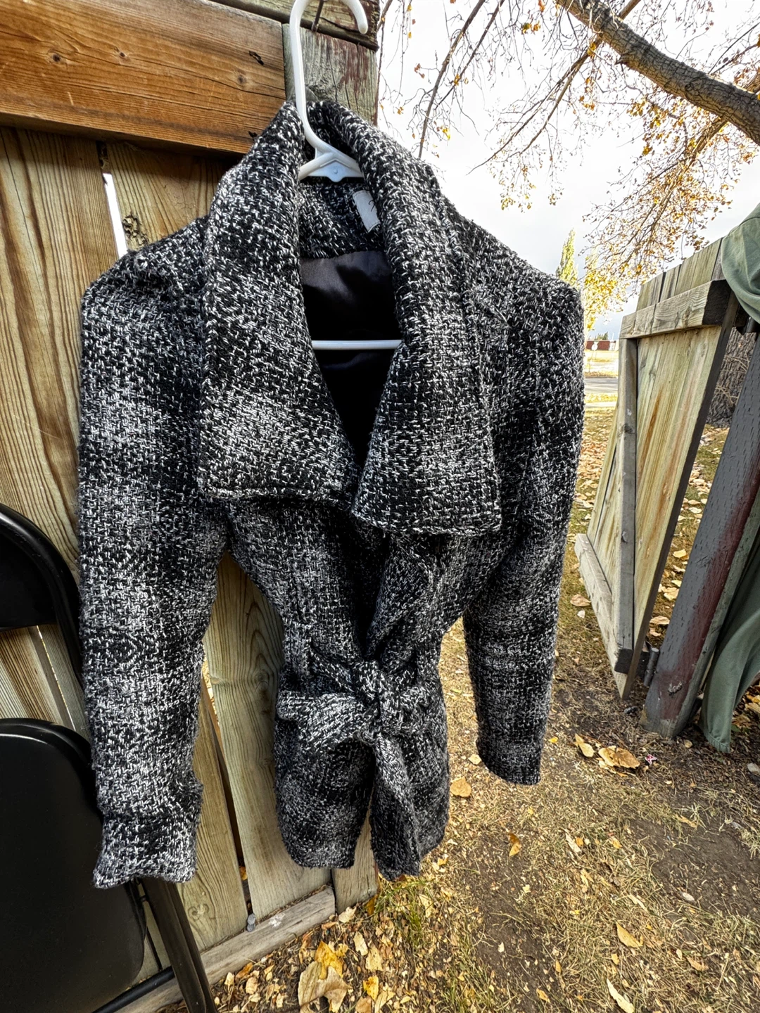 1 / 11 / 1Buy & SellBelted Tweed Coat, Black and WhiteBelted Tweed Coat, Black and White$10Stylish belted tweed coat in a classic black and white pattern! Perfect for adding a touch of sophistication to any outfit. It has a tie at the waist.ConditionGoodWHERE TO MEETThorncliffeView MapSELLERverifiedShivaniThorncliffe1639 reviews1 chatsΒ·1 favoritesΒ·18 viewsSEND CHAT TO SELLERHi Shivani! Iβm interested in your listing.Hi Shivani! Iβm interested in your listing.Get the Karrot app to chatSign In to chat