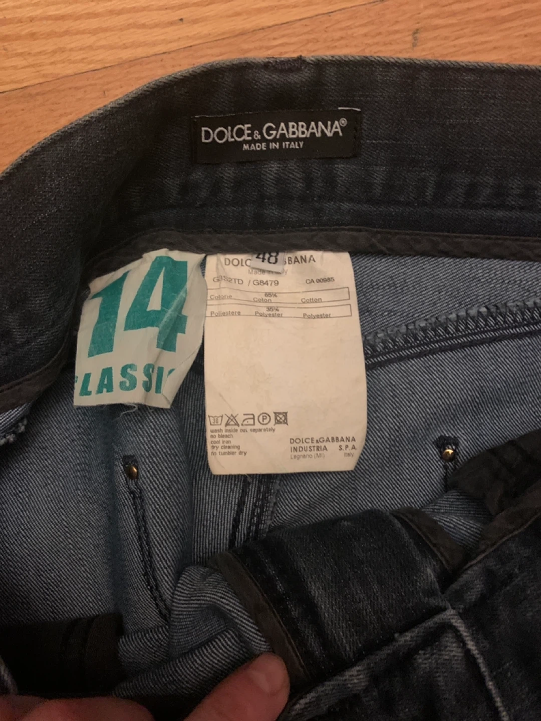 Dolce & Gabbana jeans available These jeans are made in Italy and have a classic denim look. The material is a blend of 66% cotton, 33% polyester, and 1% elastane