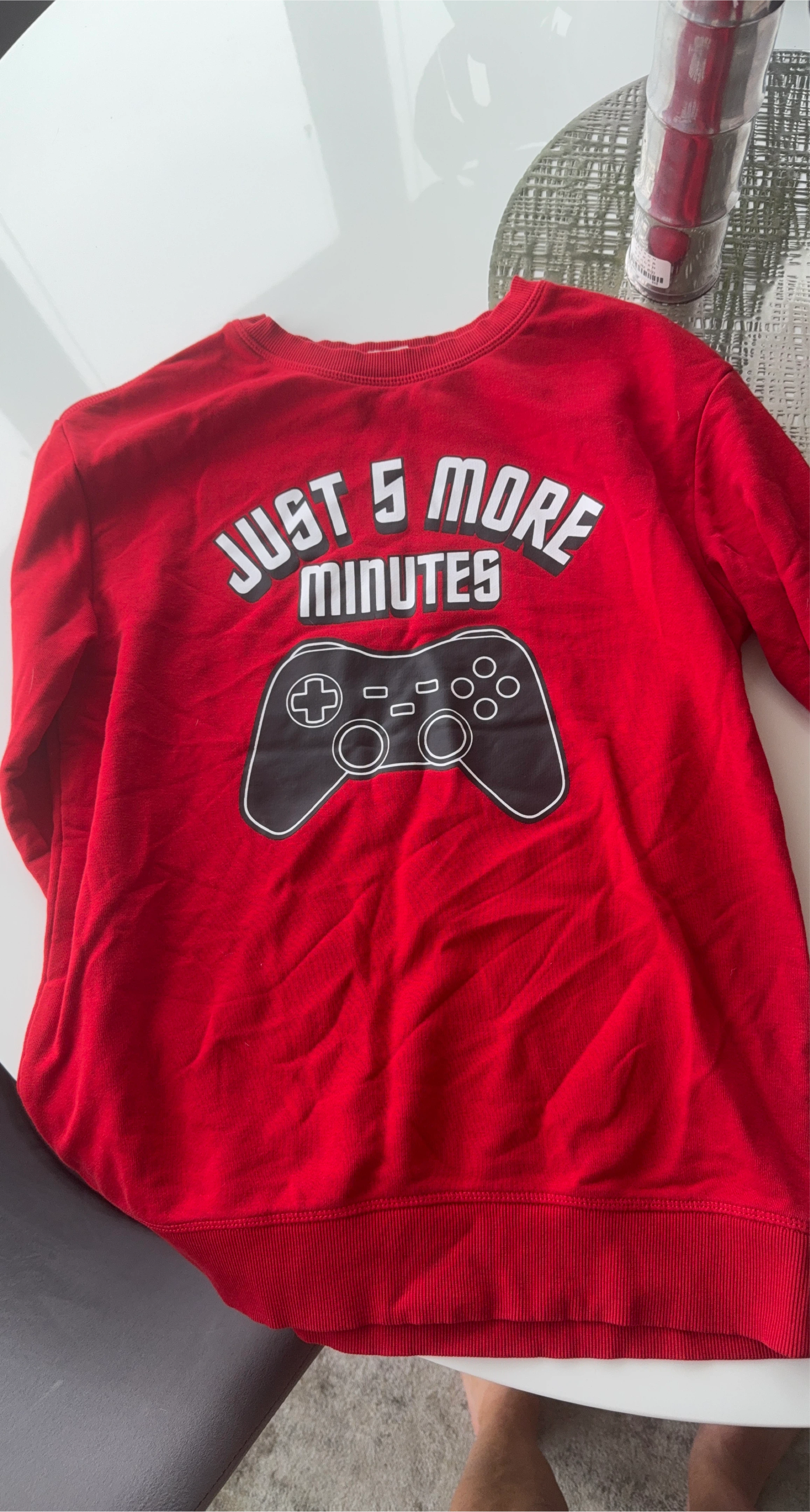 Buy & SellRed 'Just 5 More Minutes' SweatshirtRed 'Just 5 More Minutes' Sweatshirt$15H&M “ Just 5 More Minutes" sweatshirt . It's a fun and comfy piece to wear while gaming or relaxing. Youth size 12-14.ConditionLike newAge9 years and olderWHERE TO MEETOld TownView MapSELLERverifiedKristaOld Town600 reviews0 chats·0 favorites·3 viewsSEND CHAT TO SELLERHi Krista! I’m interested in your listing.Hi Krista! I’m interested in your listing.Get the Karrot app to chatSign In to chat