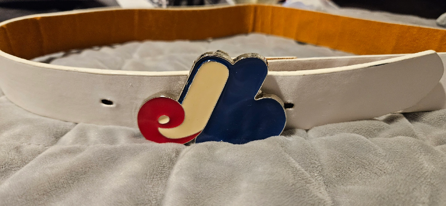 65Here's a cool MLB Montreal Expos belt up for grabs! It's a size L and features the classic Expos logo. The belt is in good condition, ready to add some vintage flair to your outfit! The size is 132 cm or 52 inches.