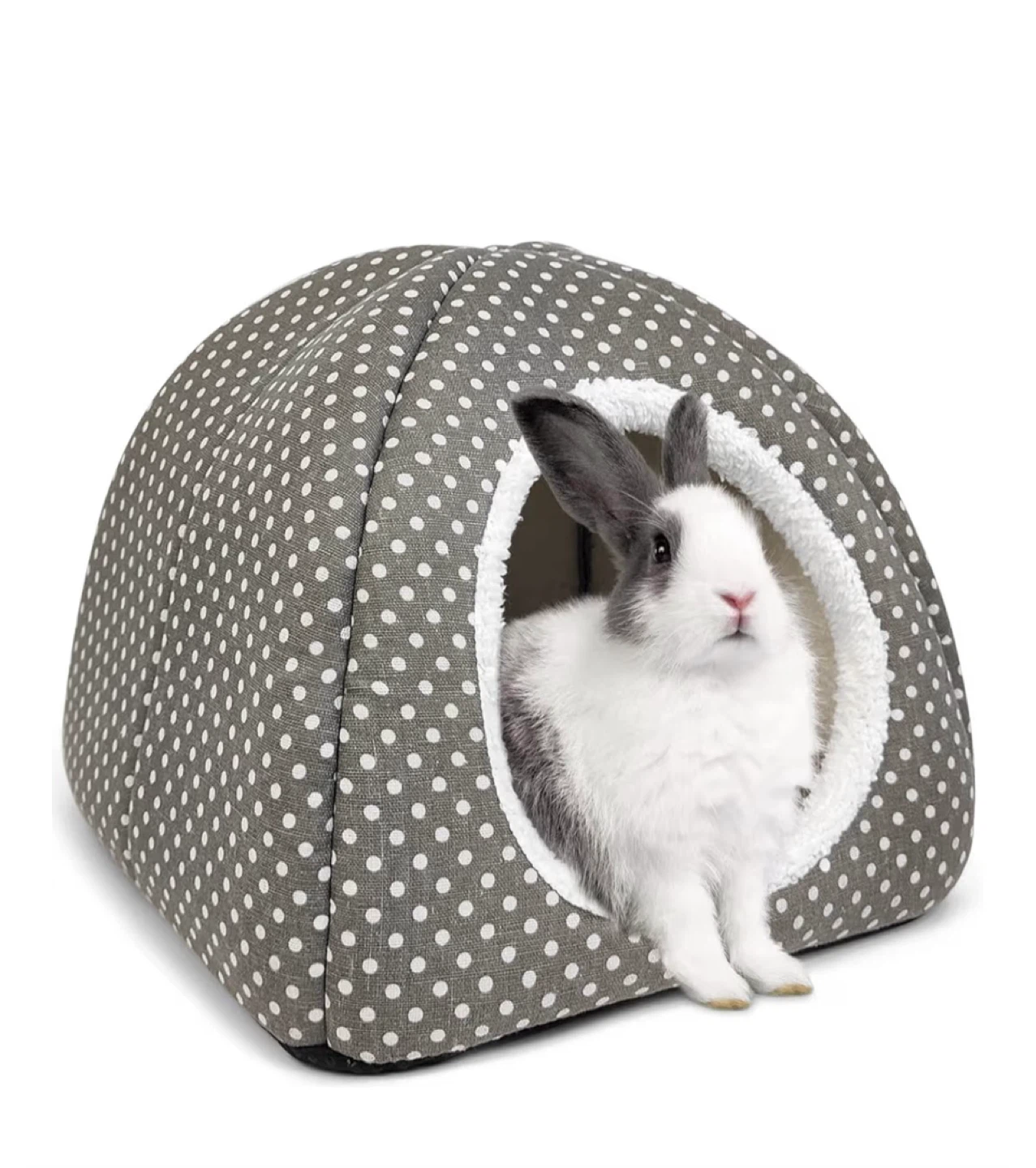 Looking for a cozy hideaway for your furry friend? This grey polka dot pet cave bed is purr-fect!