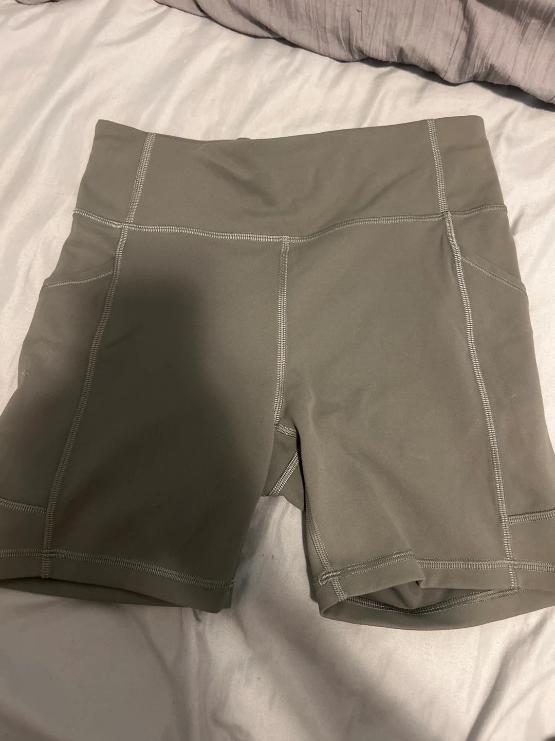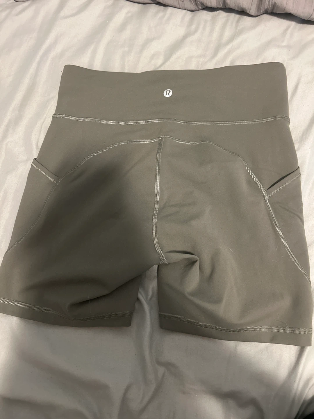 Selling a pair of Lululemon Align shorts in a neutral, earthy tone! These are super comfy and in great condition. They're a size 6 and perfect for workouts or just lounging around. The material is soft and flexible, making them ideal for any activity