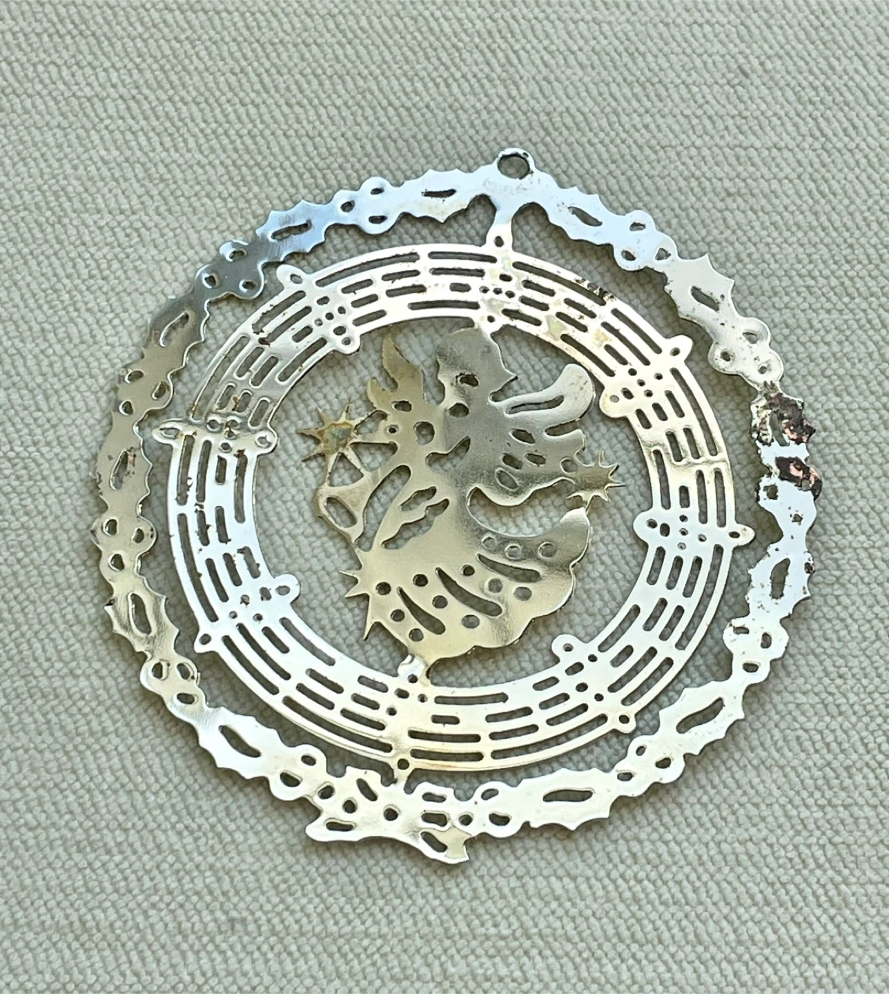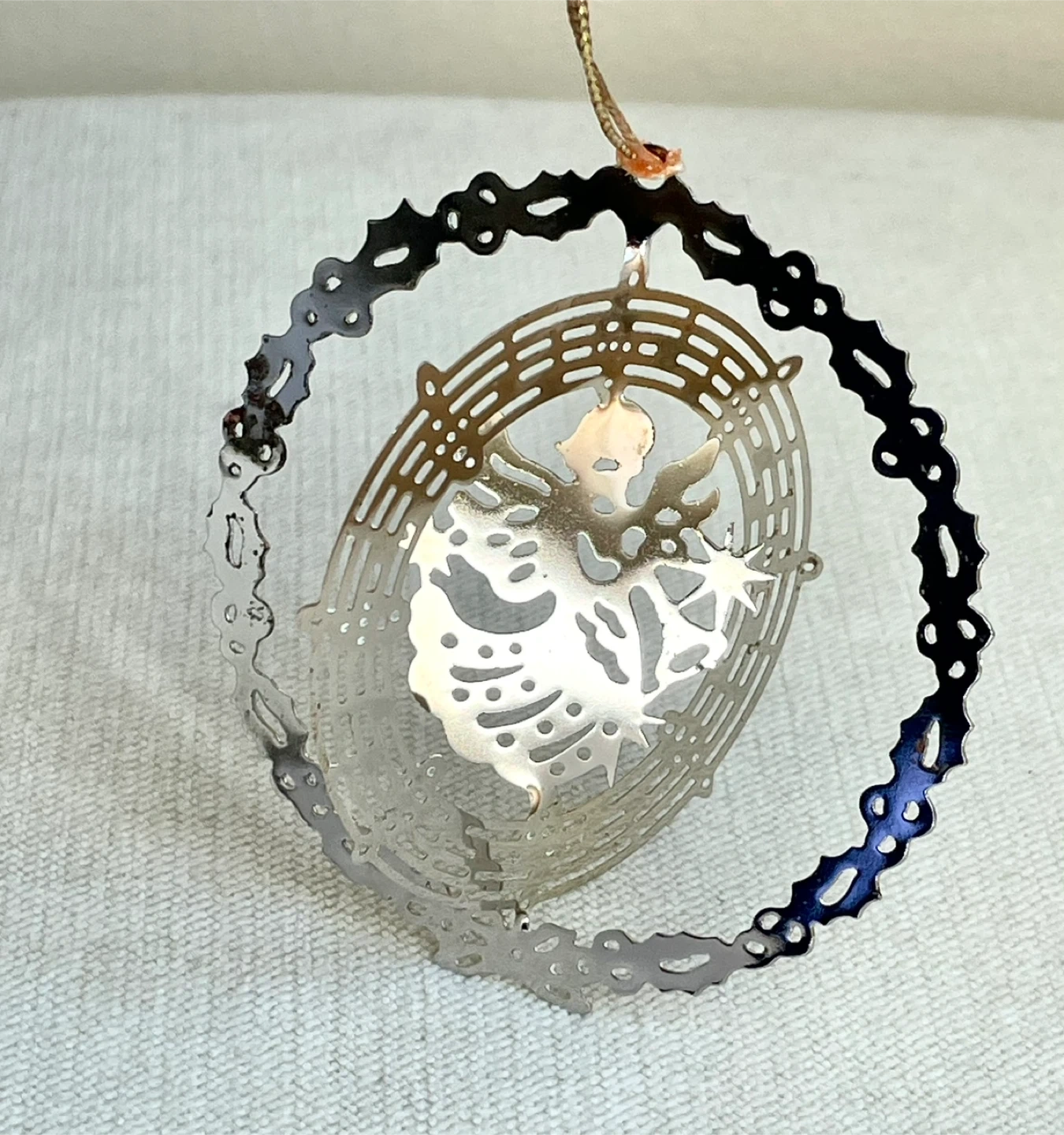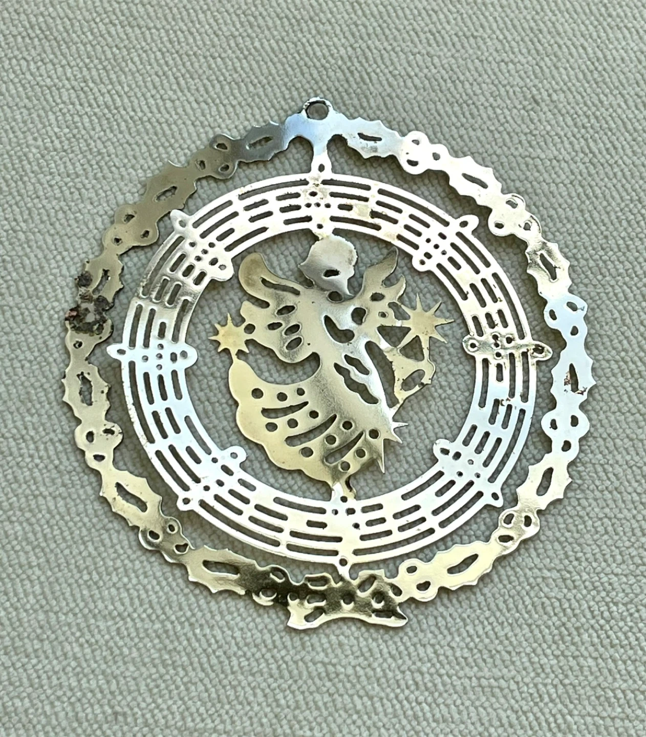 VINTAGE CHRISTMAS ANGEL ORNAMENT - PLATED BRASS - CHRISTMAS DECORATION
