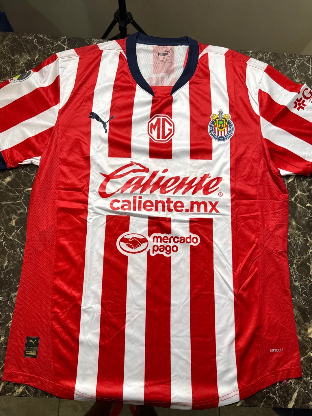 Selling a Chivas Guadalajara soccer jersey by It's in great condition and features the team's iconic red and white stripes. Perfect for any fan!