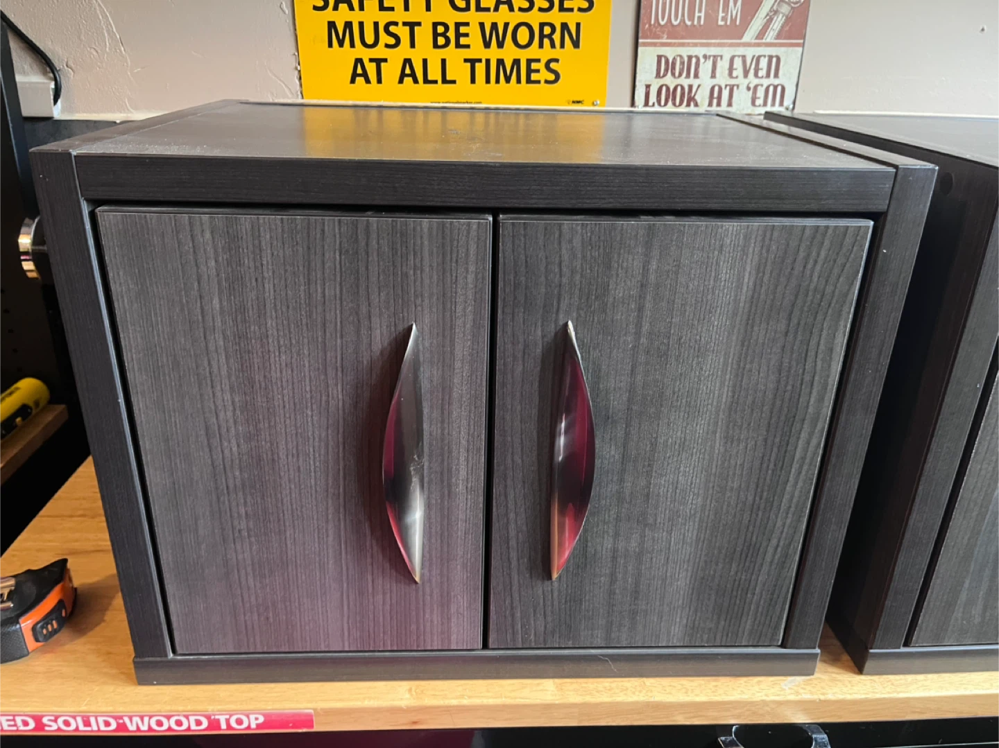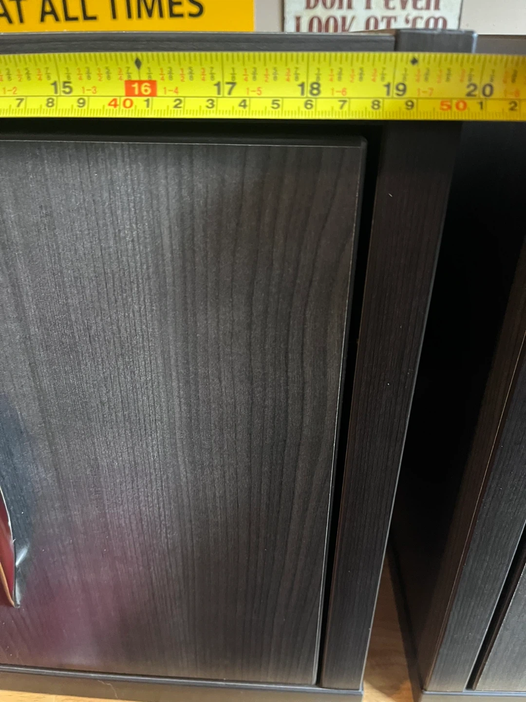 These where taken from a now defunct office , I had plans for them but no longer need and would like to pass them on to someone who could use , measurements in pictures, they are solid wood and have weight to them so I’d only suggest proper mounting.