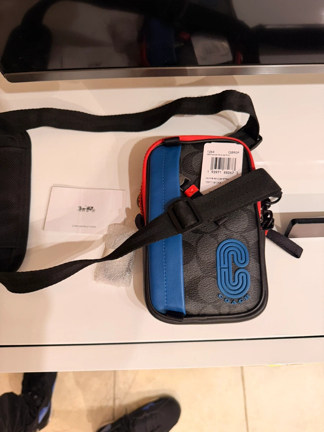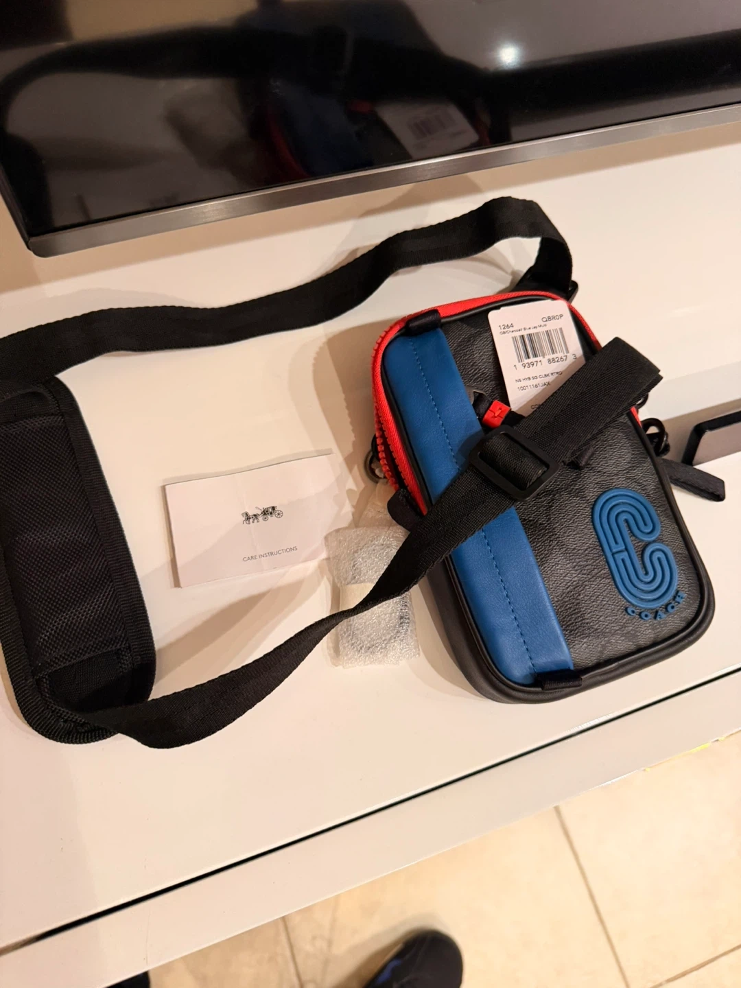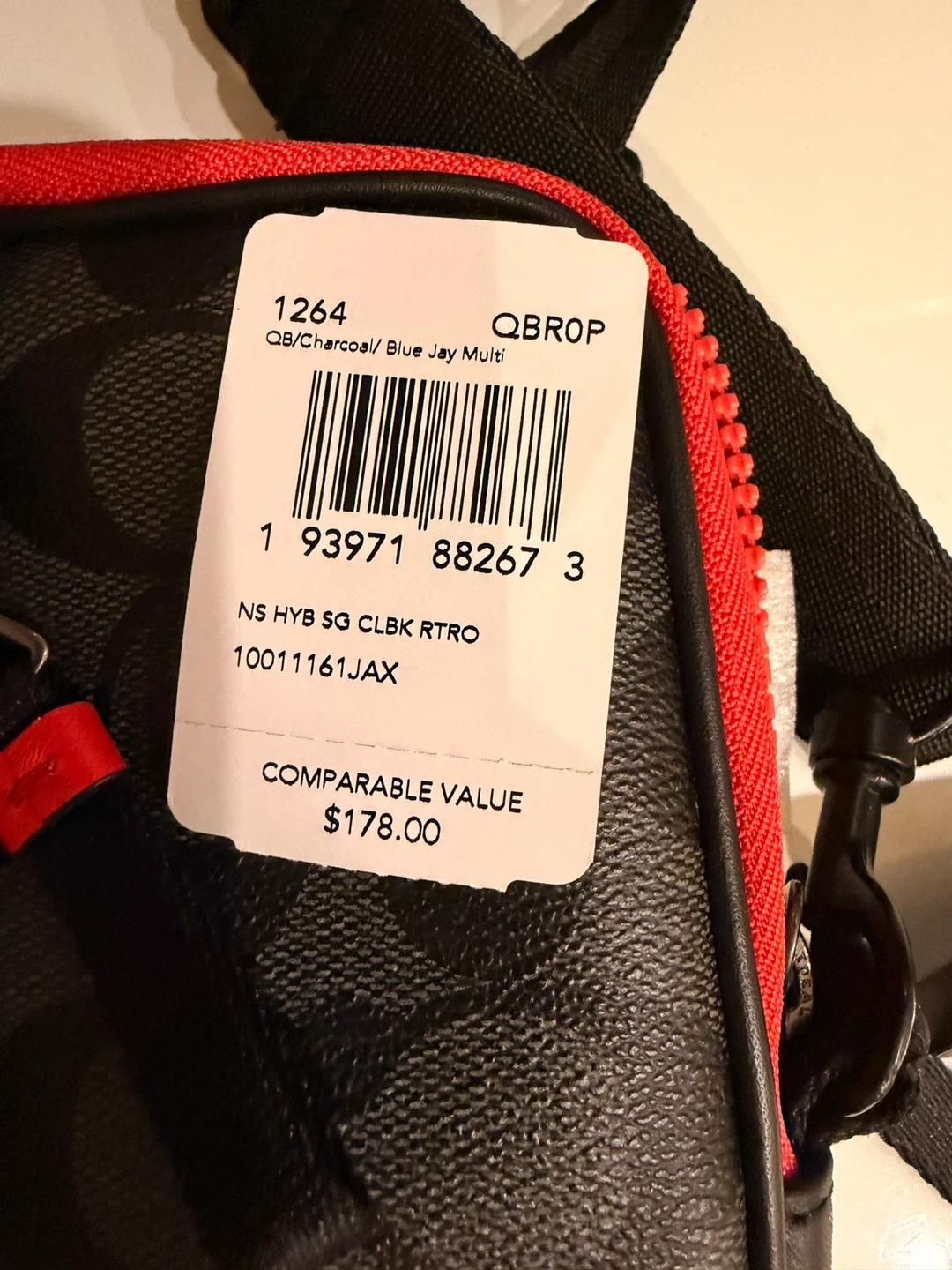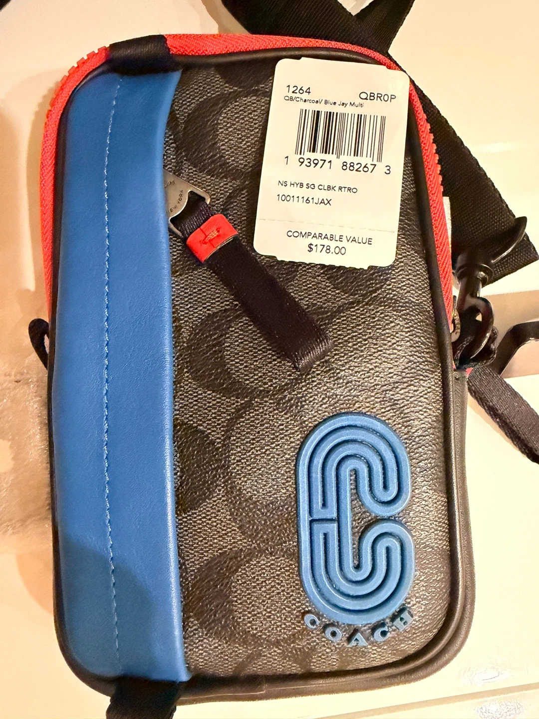 This is a Coach NS HYB SG CLBK RTRO crossbody bag in QB/Charcoal/Blue Jay Multi color. It has a comparable value of $178.00. It features the Coach logo and a stylish design. Perfect for carrying your essentials in style!