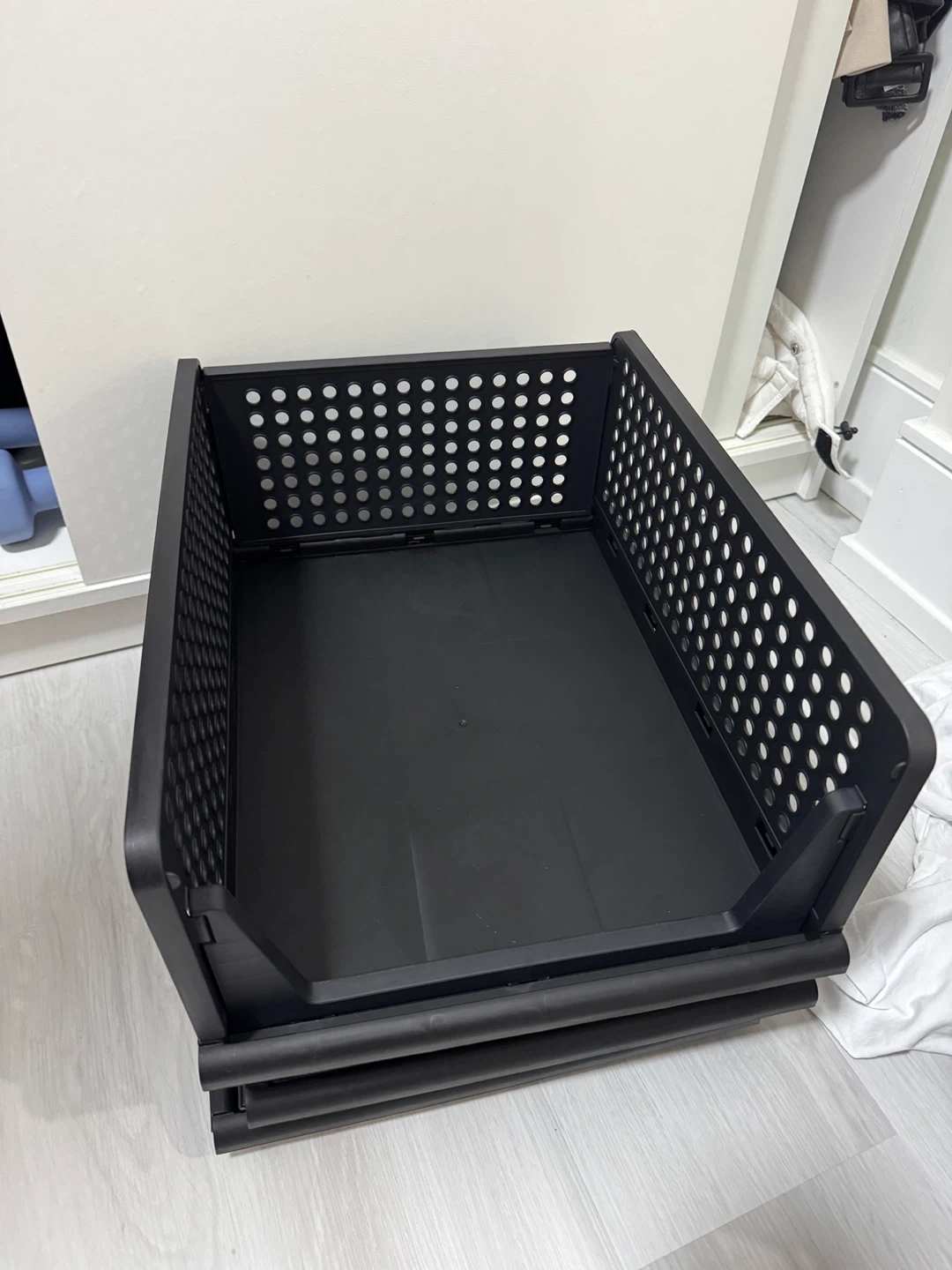 Selling 4 black plastic shoe storage boxes β all brand new!