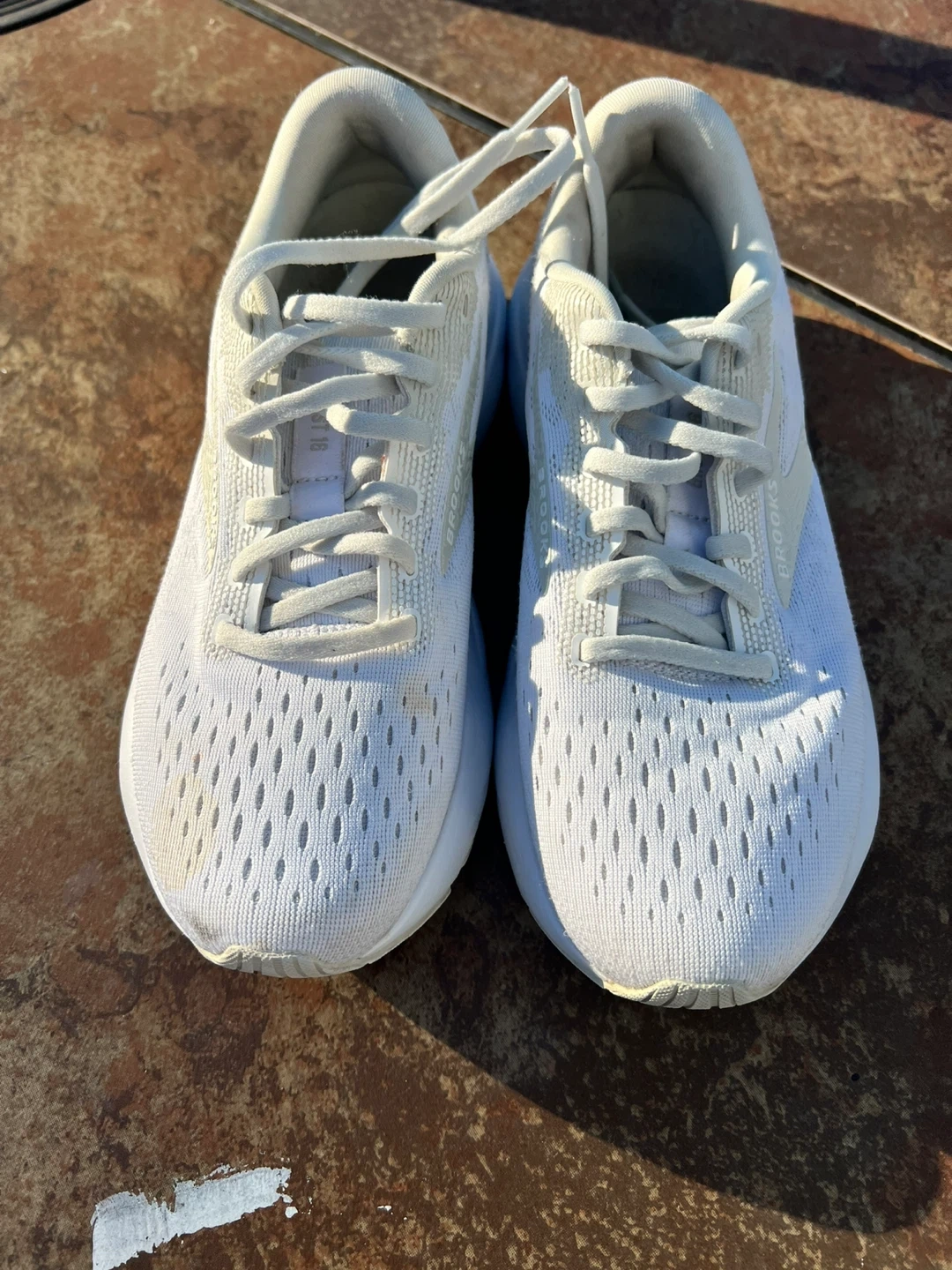 Selling a pair of Brooks Glycerin 20 women's running shoes in white. They are in good condition for running or casual wear. These shoes are known for their comfort and cushioning, making them great for long runs or everyday activities