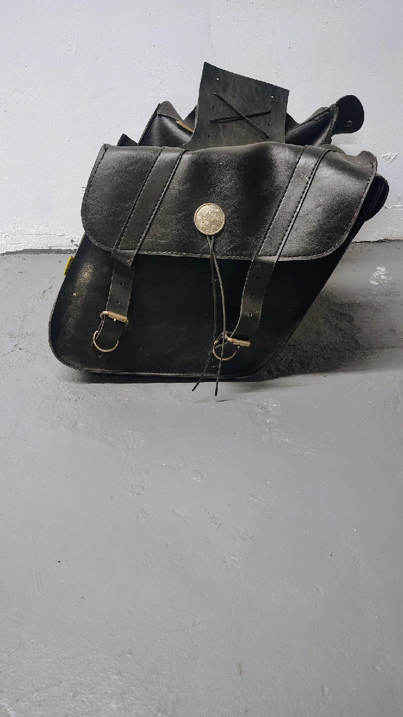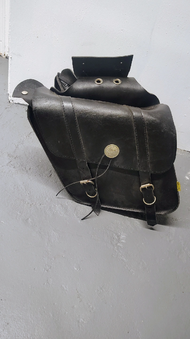 Selling a pair of black leather motorcycle saddlebags. They show some signs of wear and tear, as you can see in the photos, but are still functional. Great for adding some extra storage to your bike!