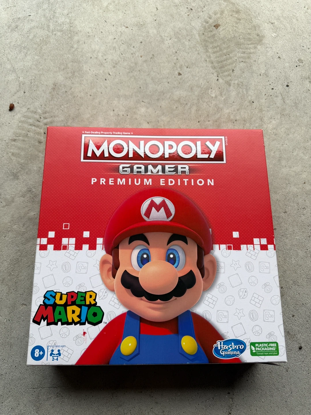 Selling a Monopoly Gamer Super Mario Premium Edition board game! It's suitable for ages 8+ and for 2-4 players. It features plastic-free packaging, except for the tape and glue holding it together. Hours of fun for the whole family