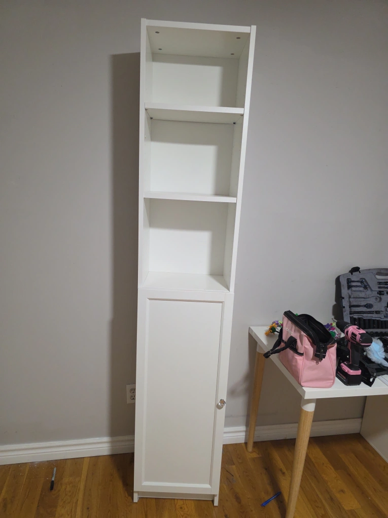 Selling an IKEA Billy bookcase in white! It's in great shape and ready to organize your books or display your favourite items. This bookcase features adjustable shelves, so you can customize the space to fit your needs. It also has a bottom cabinet for closed storage. Perfect for any room!