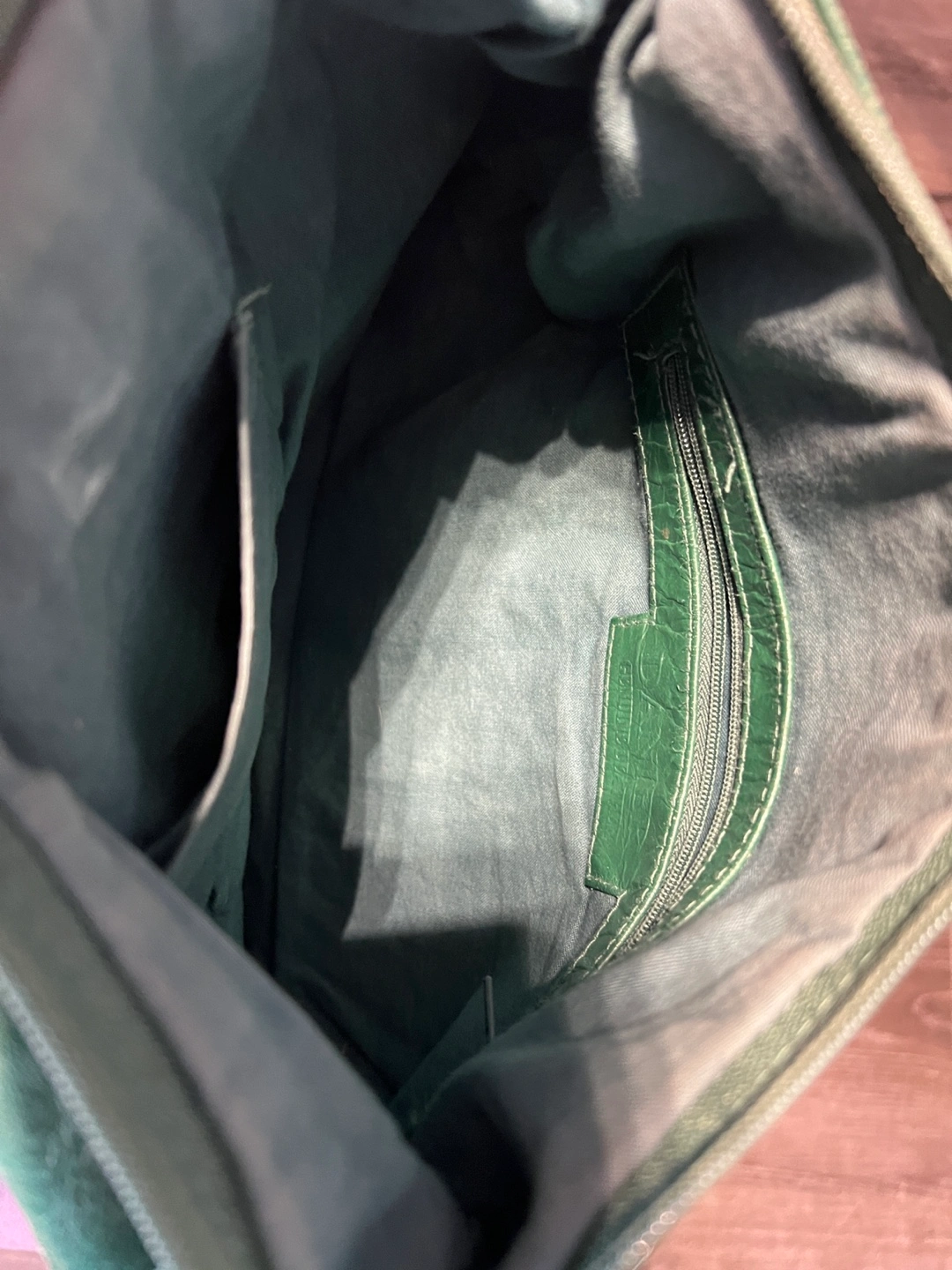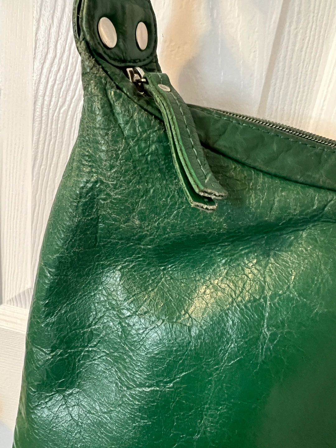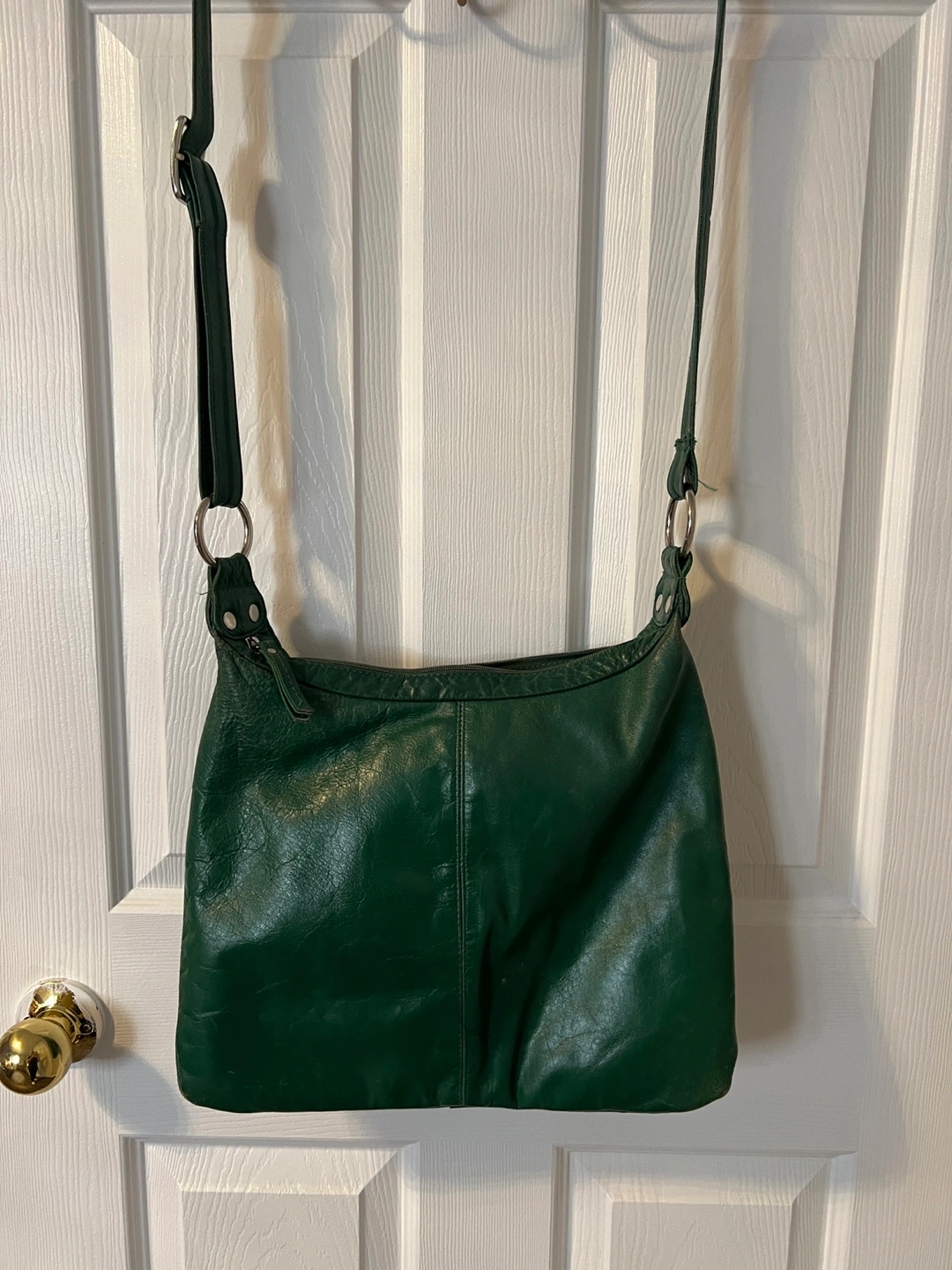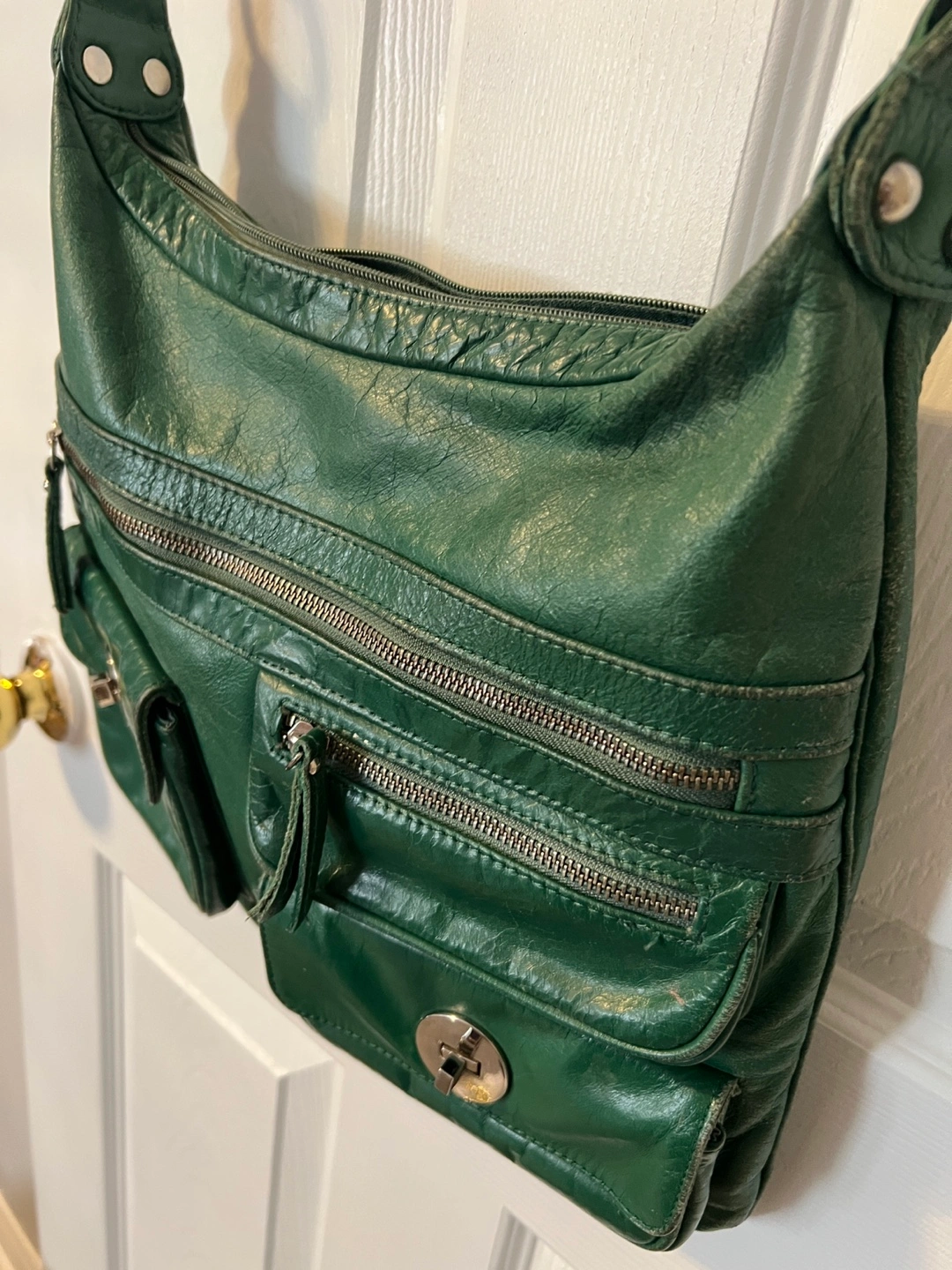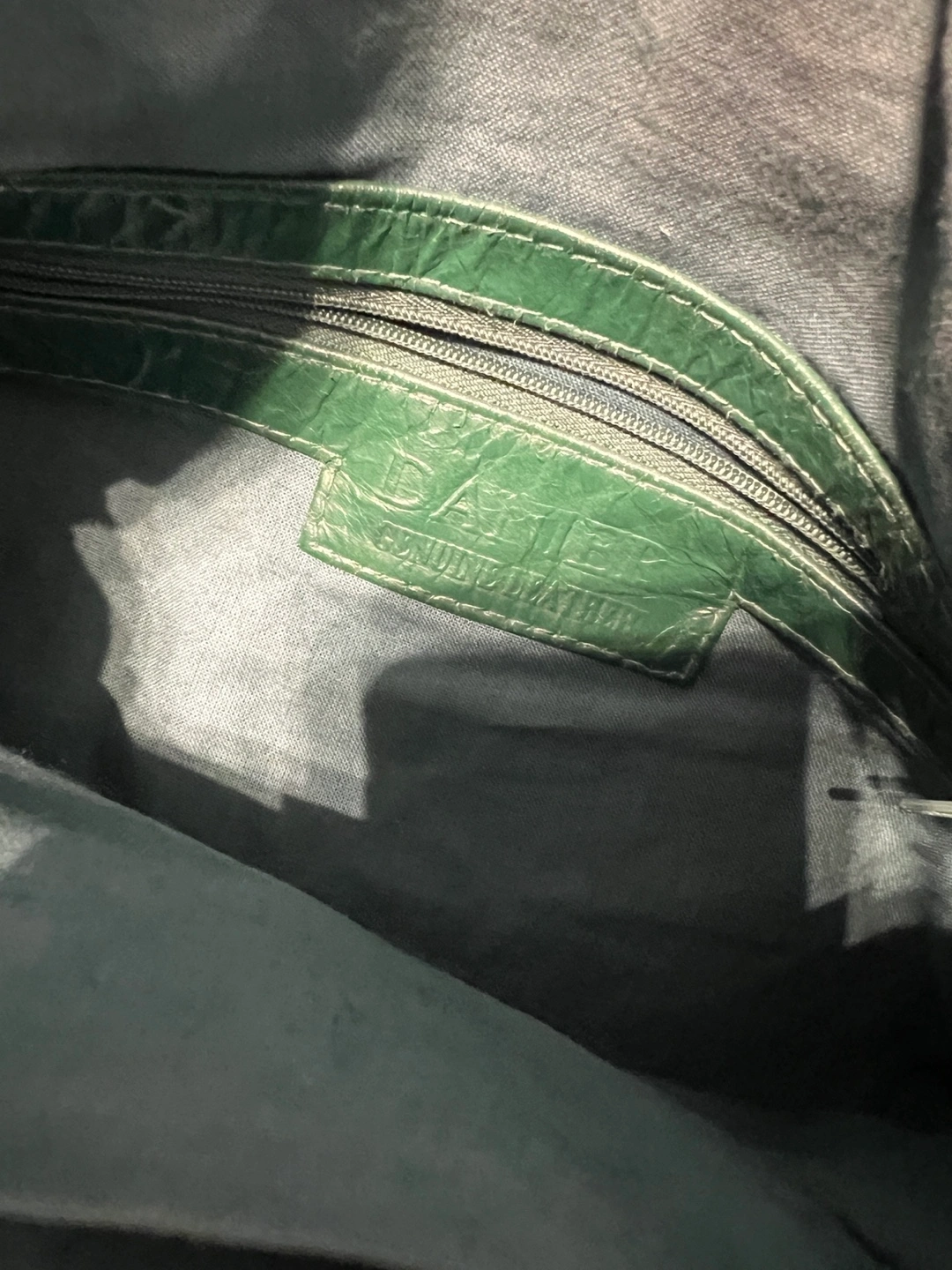 Danier leather shoulder bag in a lovely green leather. It's a stylish and functional bag with a zipper and pockets there are some wear so reflect the price. Strap is adjustable to use as cross body bag. Perfect for everyday use. From smoke free home. Please check my other listings.