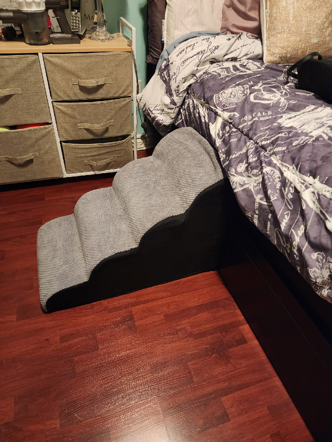 Selling soft 20" tall pet stairs in grey and black. These are perfect for helping your furry friend reach higher places like beds or couches. In great condition and ready for a new home!