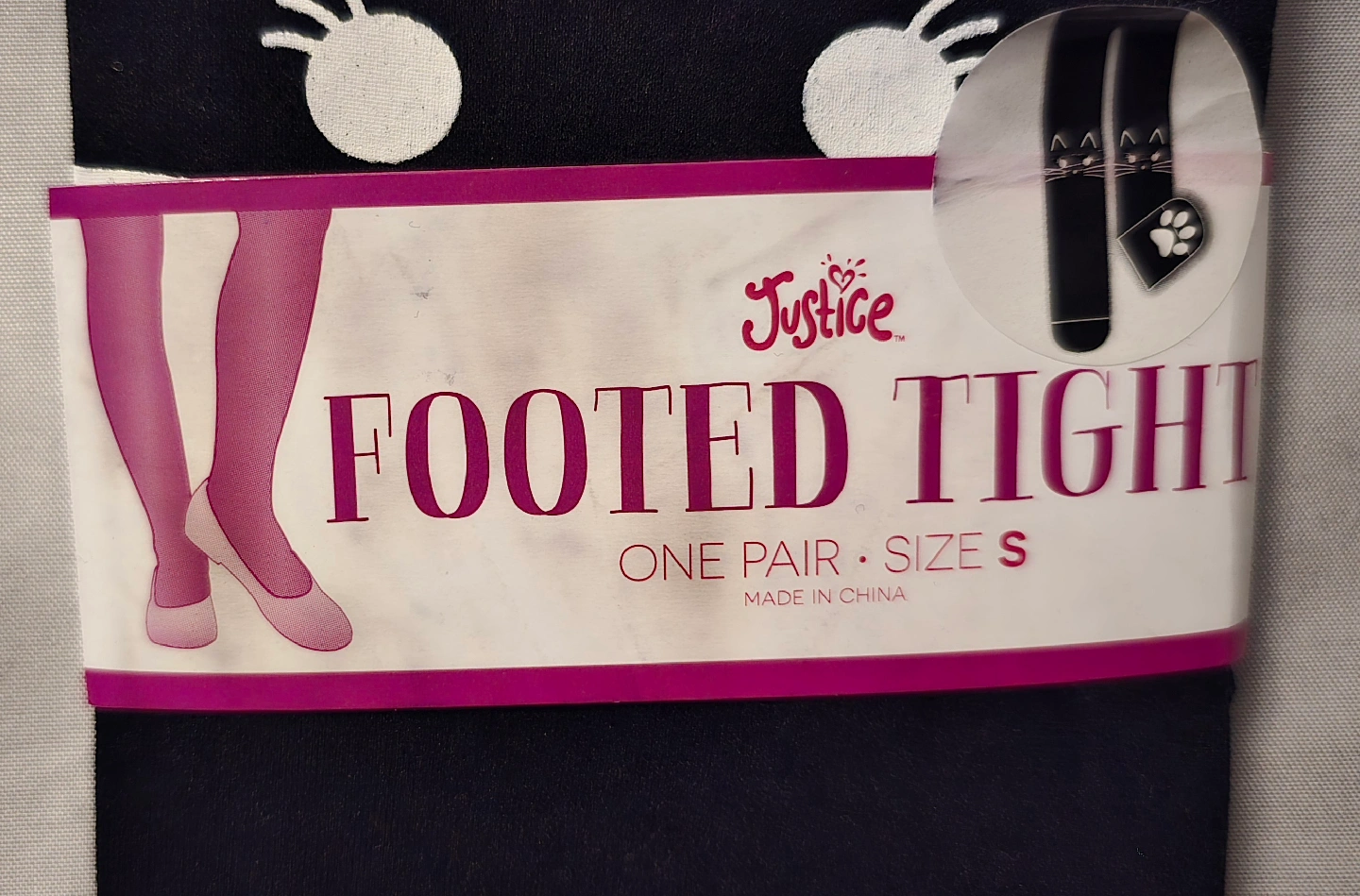 🥕 NEW! Justice Cat Themed Footed Tights! - Size S - 7 / 8
