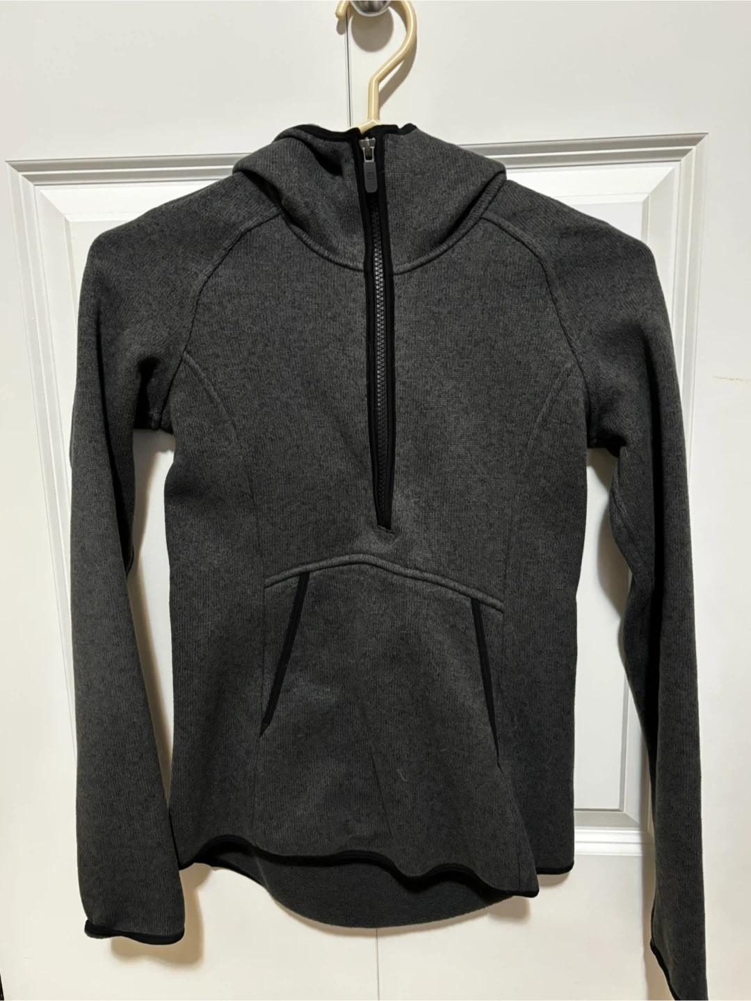 Selling a Lululemon half-zip hoodie in a lovely grey colour! It's in great condition and ready for a new home. Perfect for layering or wearing on its own for a comfy, casual look