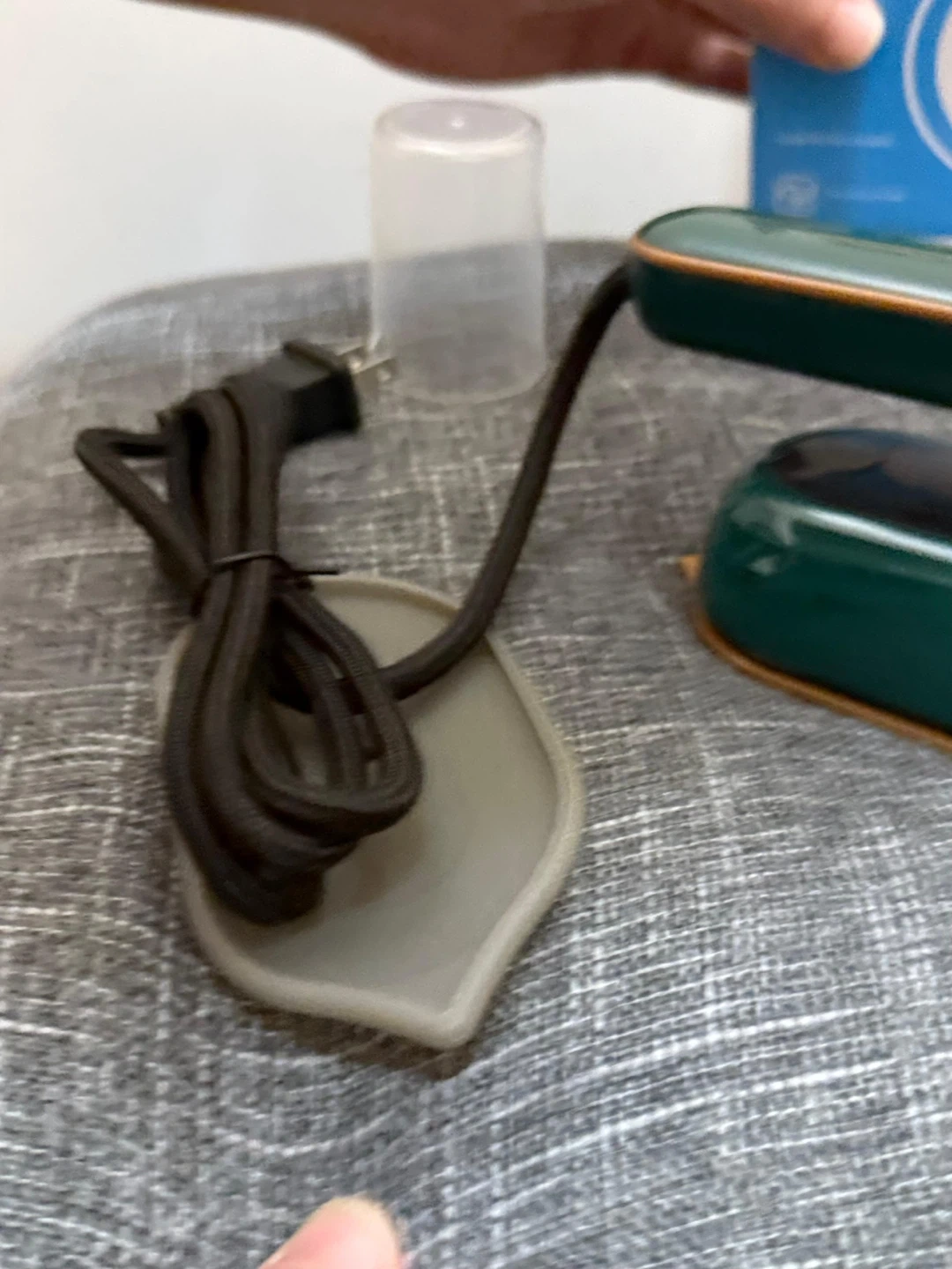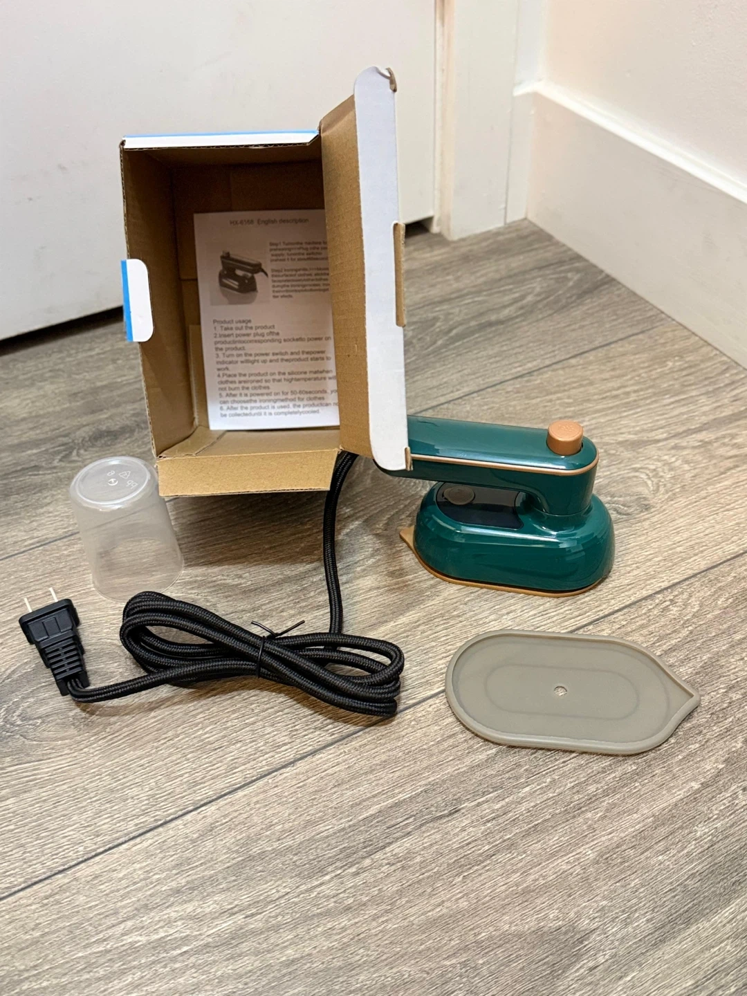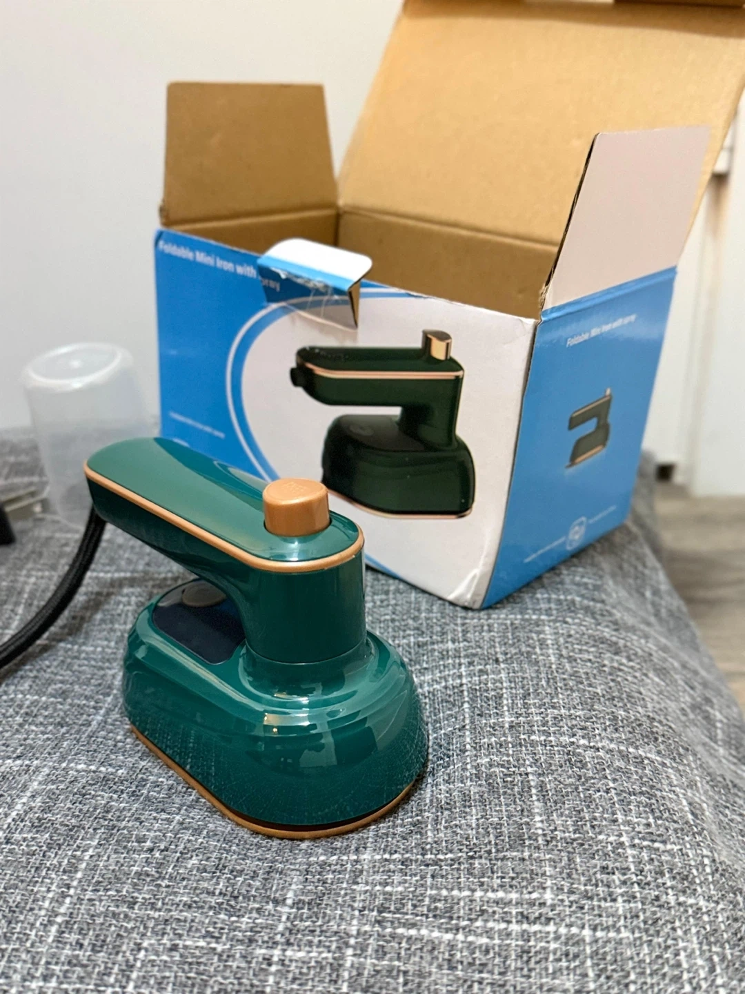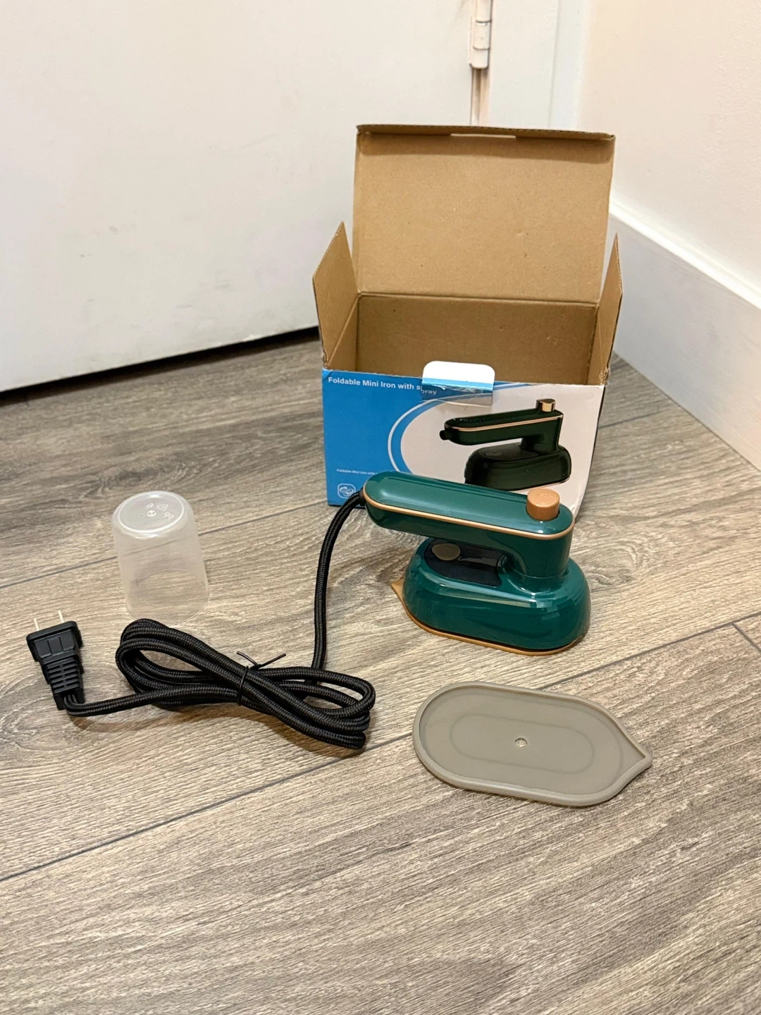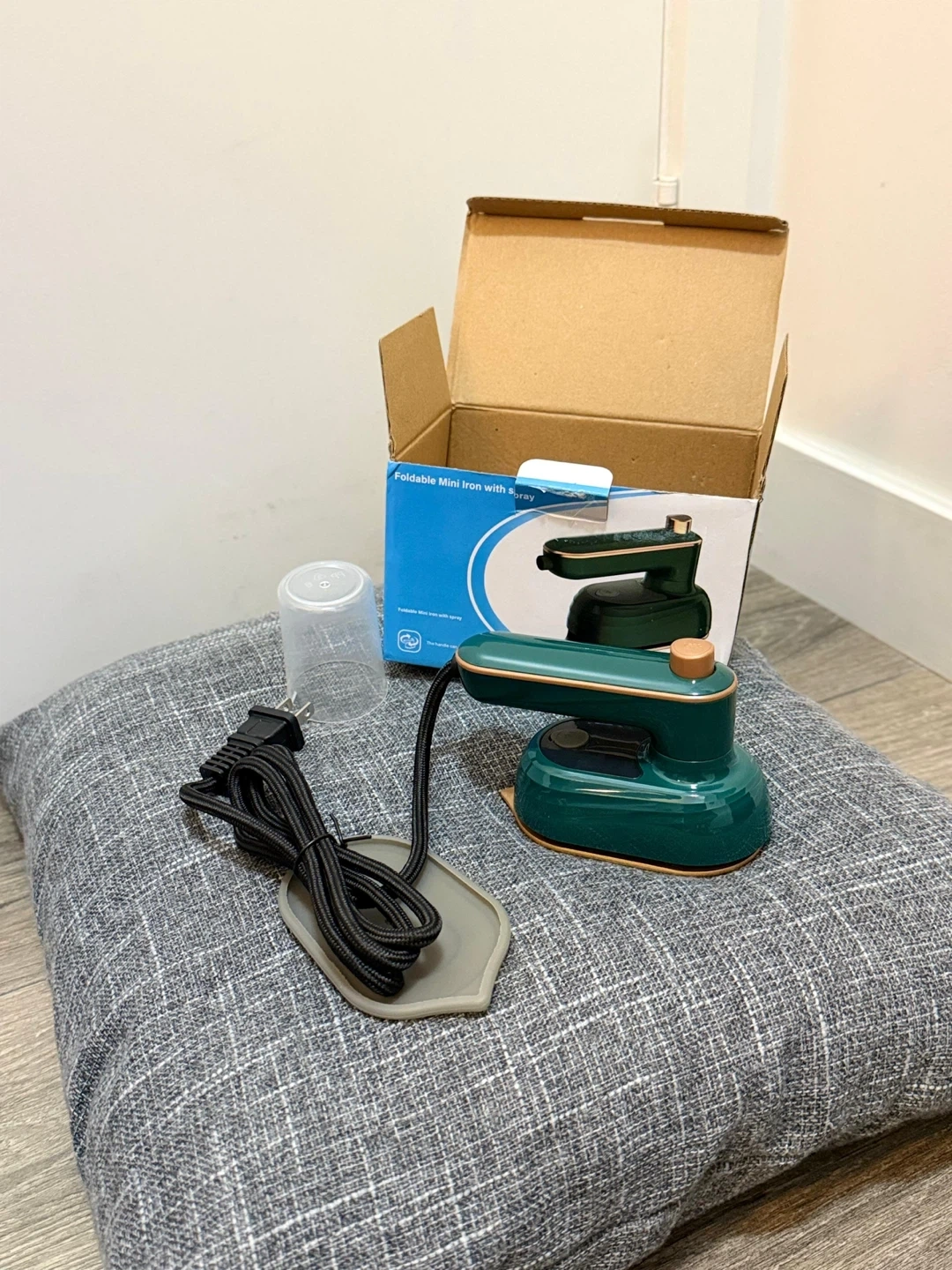 Selling a foldable mini iron in green! It comes with its original box and components, including the water cup and heat resistant mat. Perfect for travel or small ironing jobs!