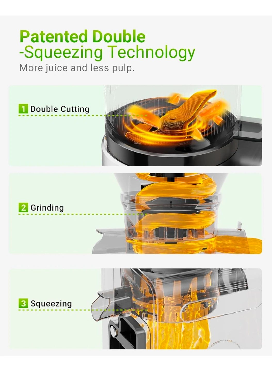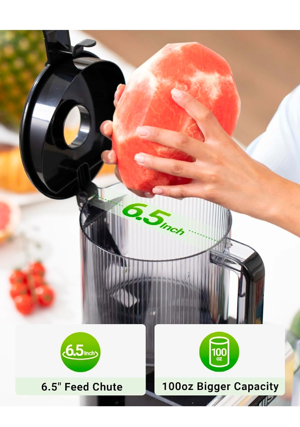 Cold Press Juicer Machines – 6.5'' Large Feed Chute for Whole Fruits & Vegetables, High Juice Yield, Easy To Clean