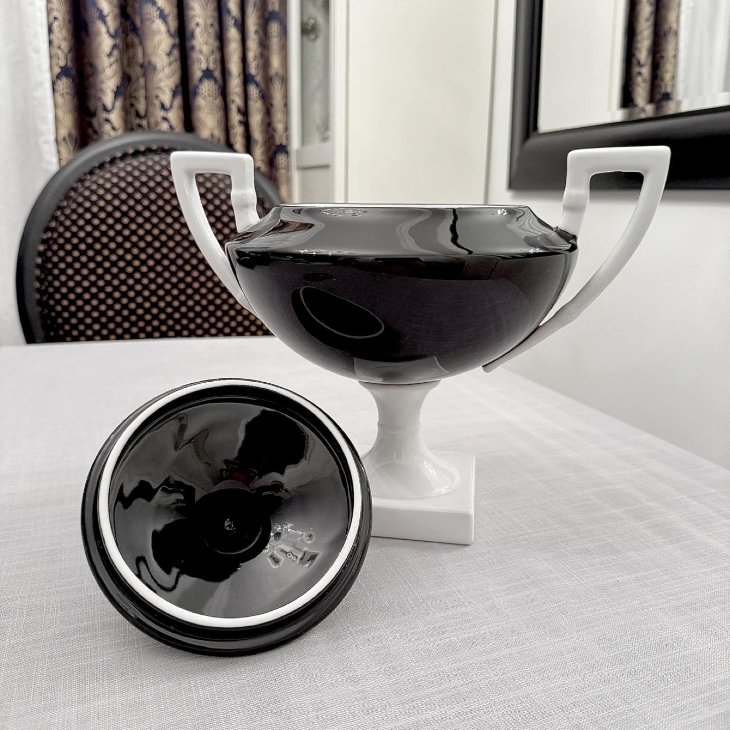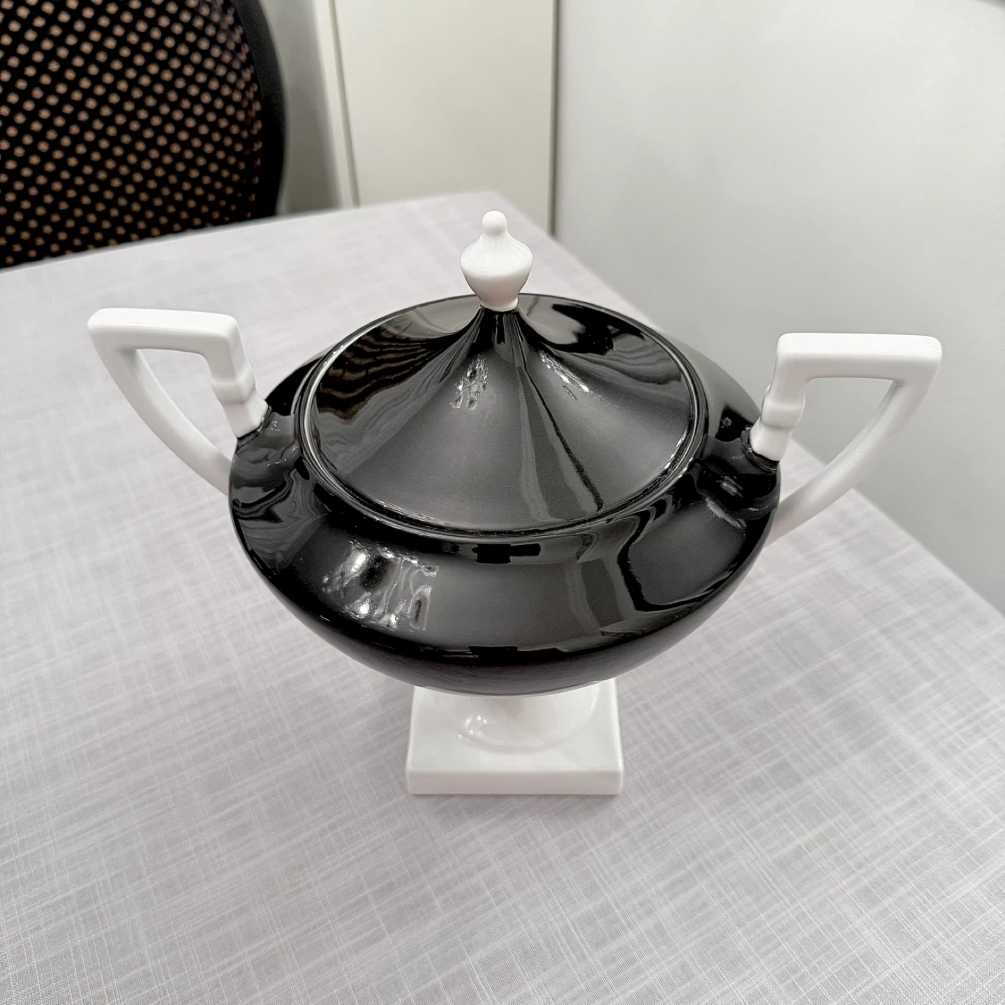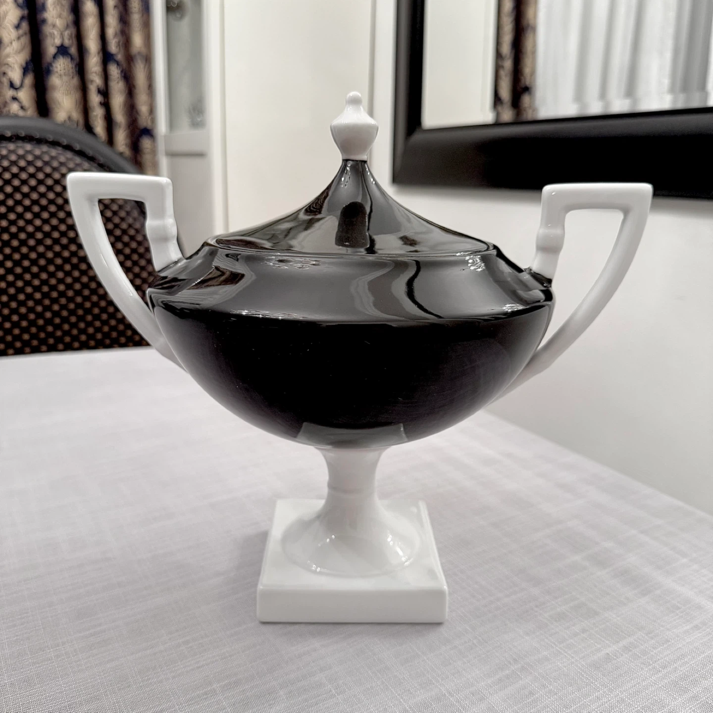Decorative black & white lidded porcelain urn