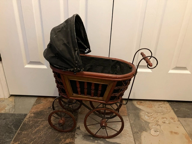 Antique doll stroller, suitable for displaying vintage dolls/toys.