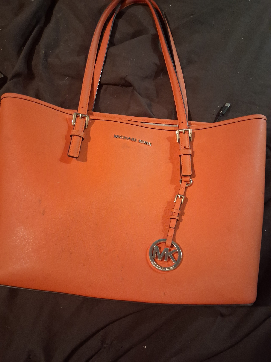 Selling a Michael Kors tote bag in a vibrant orange colour. It's a stylish and practical bag, perfect for everyday use. It does show some signs of use.