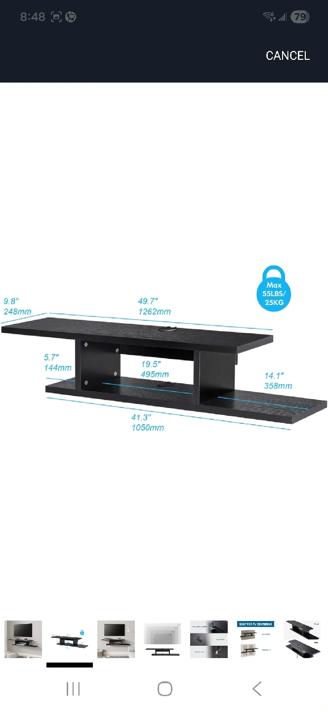 TV Stand / Floating Shelf – Fits up to 65” TV