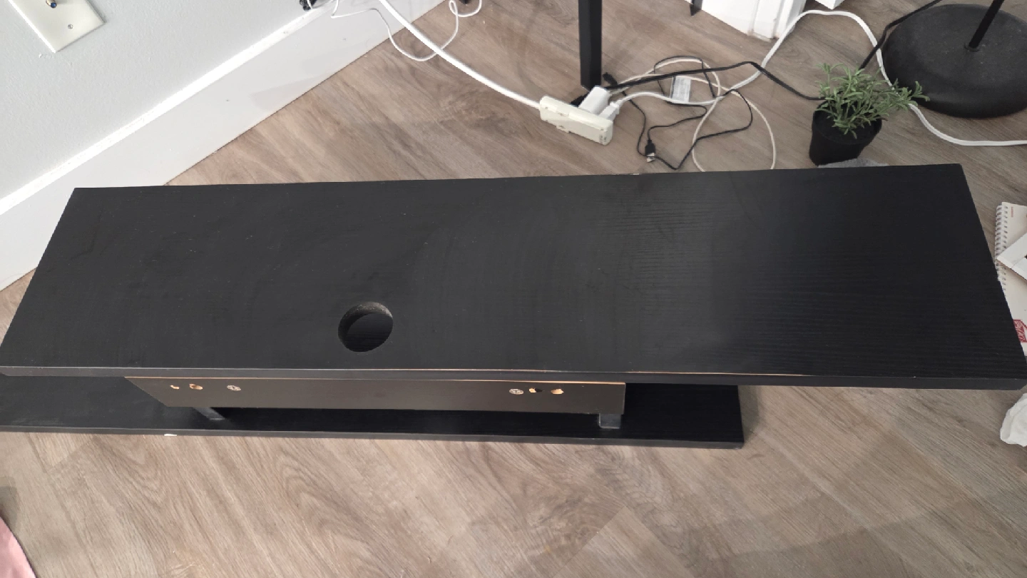 Good condition TV stand / floating shelf, fits up to 65” TVs.