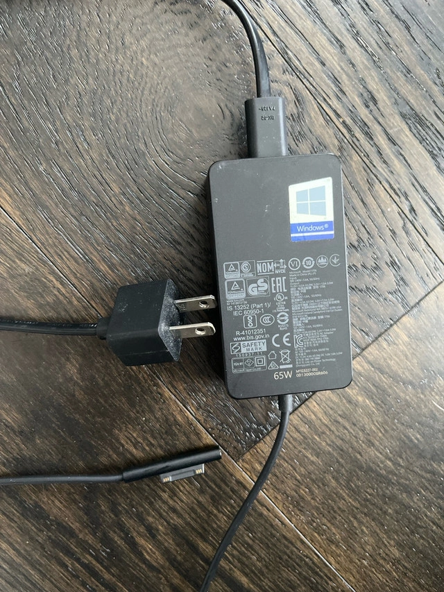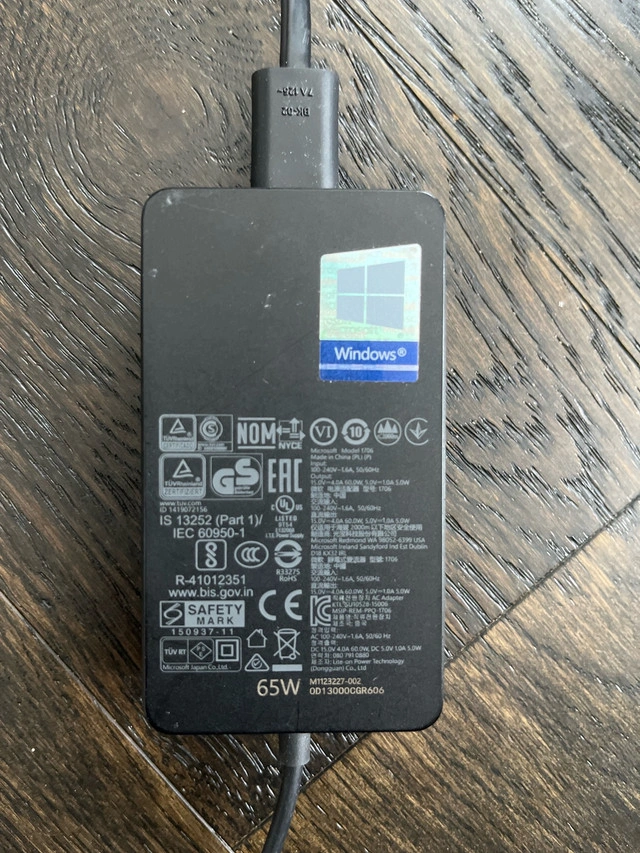 This is a used Microsoft Surface 65W power supply, fully functional and ready to keep your Surface devices charged. It's in good condition, showing some signs of wear but operates perfectly. Here are some of its specifications: