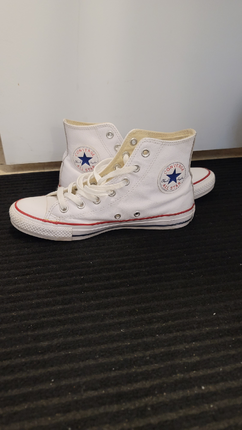 Selling a pair of Converse Chuck Taylor All Star leather high tops in white! They are in great condition and ready for a new home. Classic style that goes with everything!