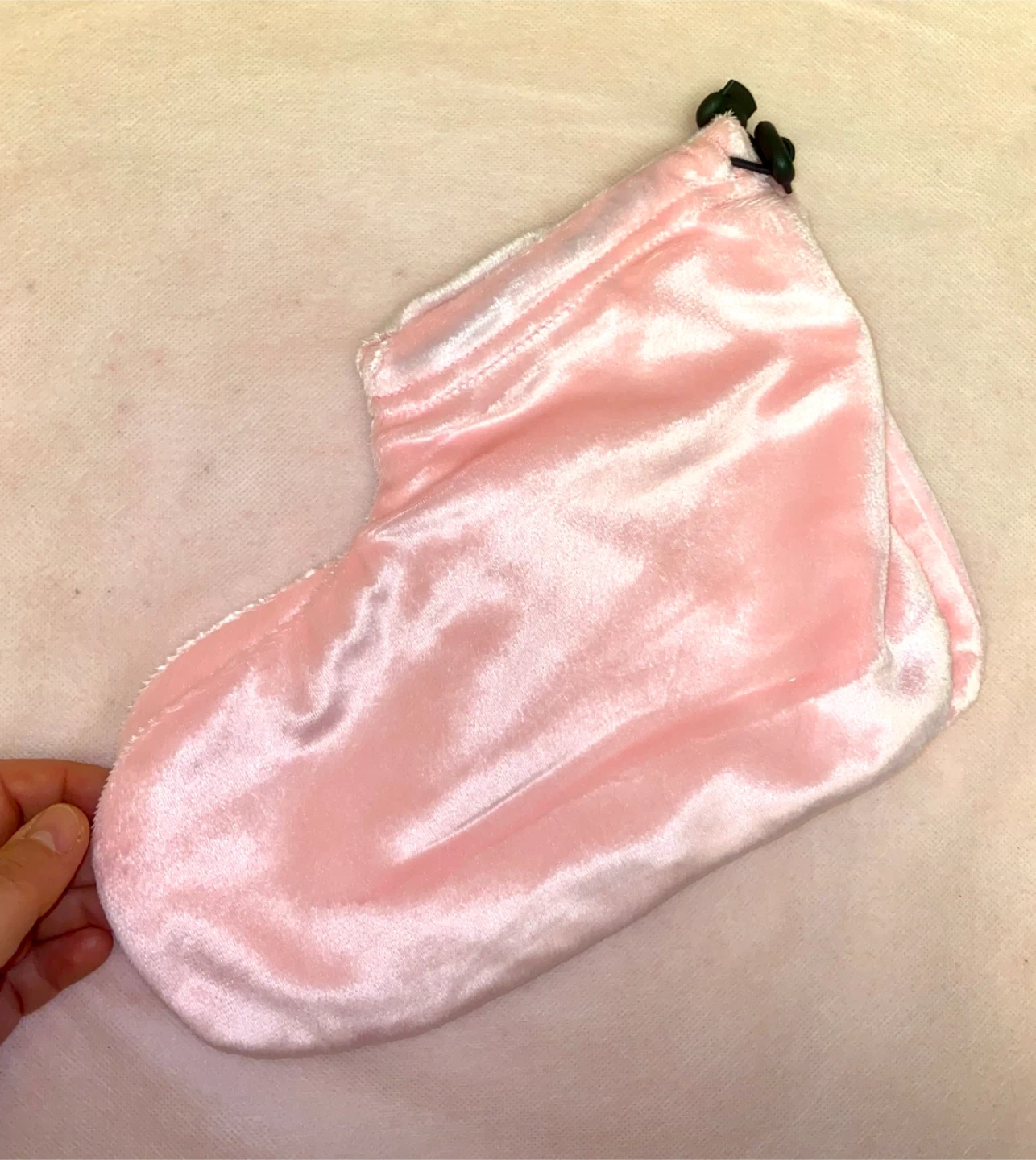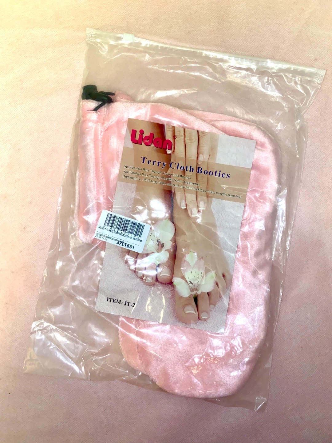 These Lidan Terry Cloth Booties are perfect for spa treatments at home! They are a soft pink colour and measure approximately 11 inches in length and 9 inches in height. They come in their original packaging.