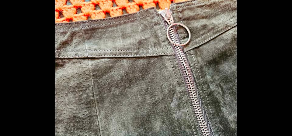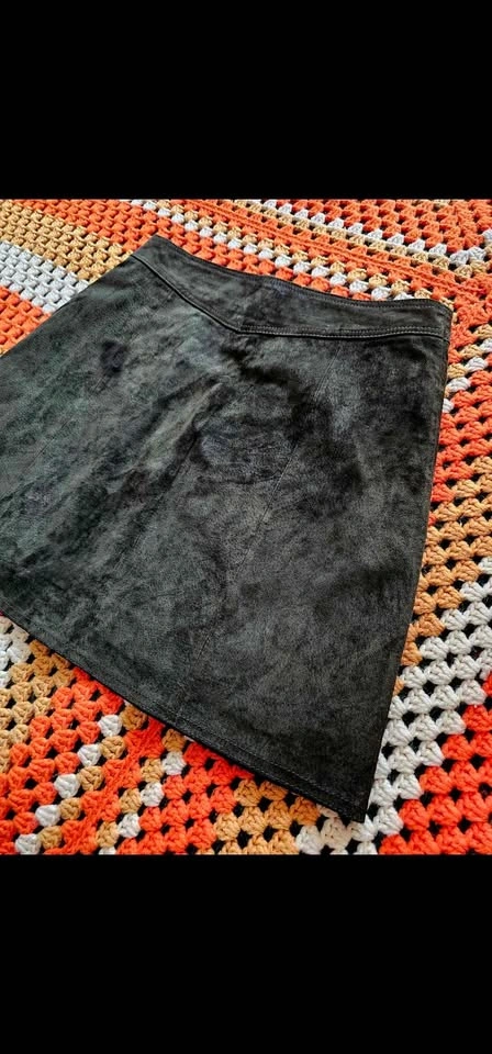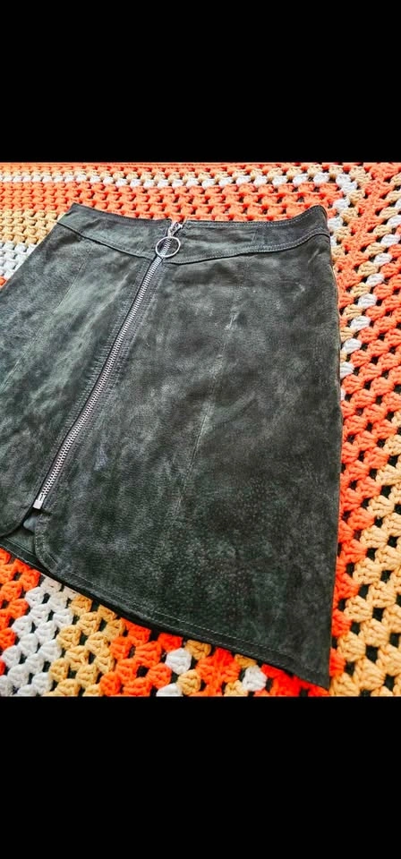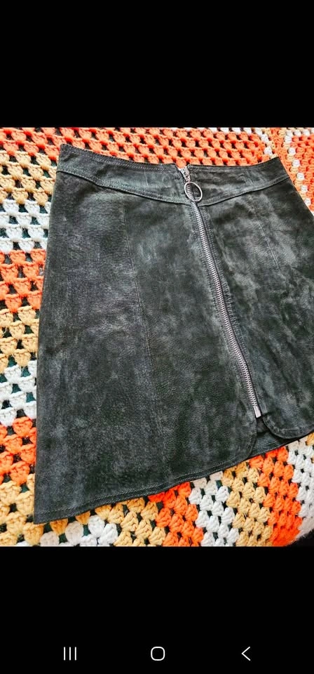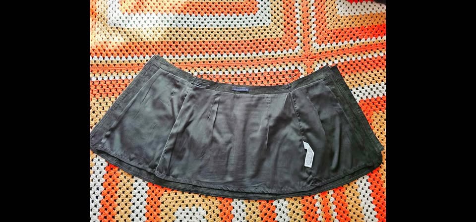 Skirt is in very good used condition, there are some light scuffs on the suede and impressions from the zipper pull pressing on it. It has hardly been worn.