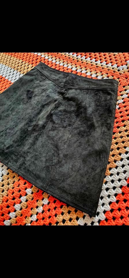 Size S Zara Green Suede Zippered Retro Mini Skirt