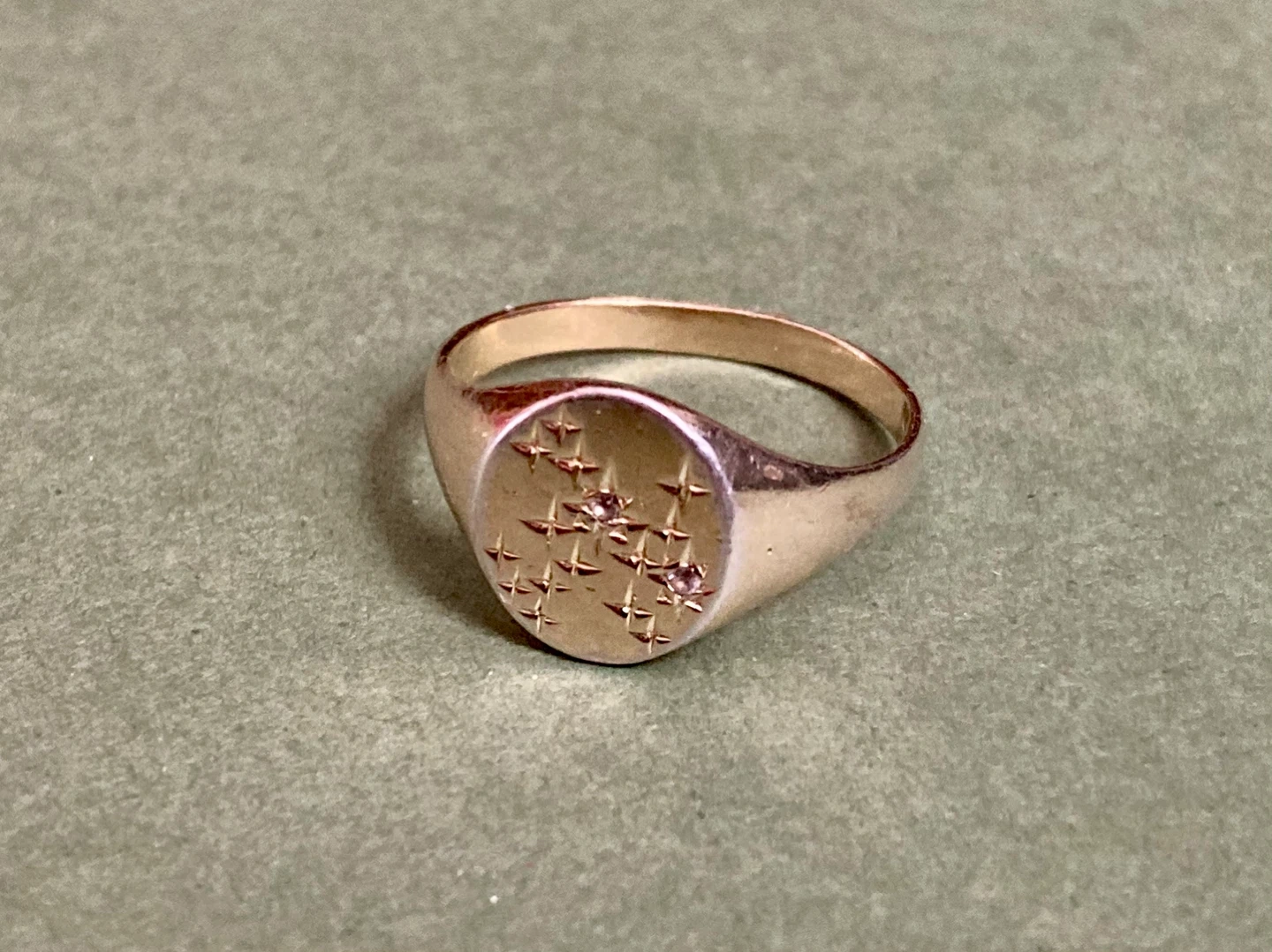Mejuri signet ring featuring the Sagittarius constellation, size 9. Now discontinued and no longer available in their stores. This line was designed as the zodiac reinvented, totally cool and actually minimal. Wear it every day, with or without people knowing your sign.
