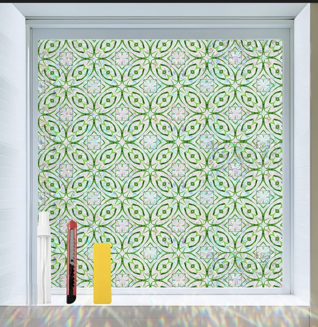 Window Privacy Film with Installation Tools. New. Style: GeoRainbow. It's easy to install. The film features a pretty green pattern and offers privacy while still letting in light. 17.5"x78.7"
