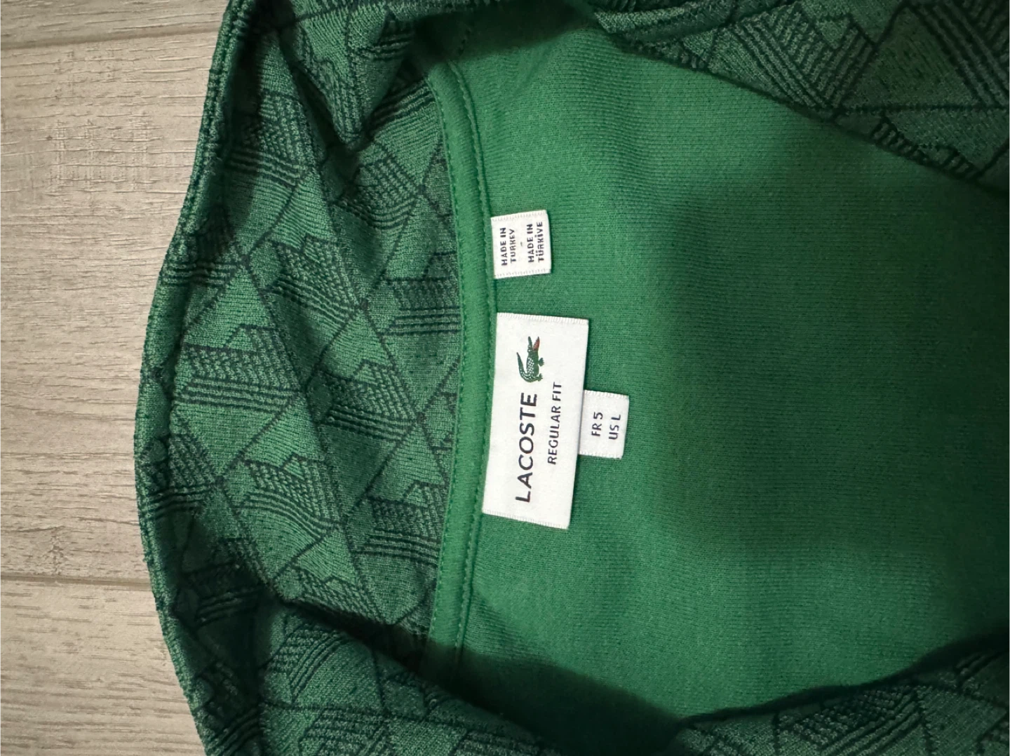 Selling a Lacoste regular fit track jacket in size L. It features a cool all-over pattern and the classic Lacoste logo. Great for adding a sporty touch to your wardrobe! No flaws
