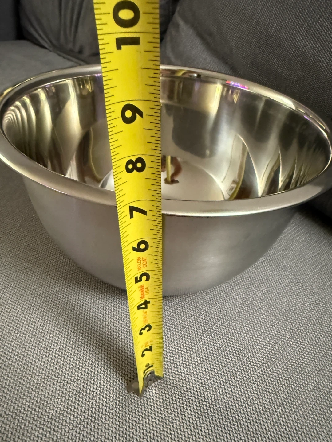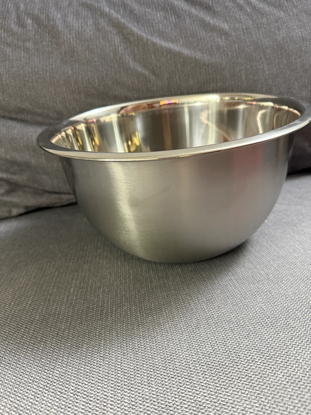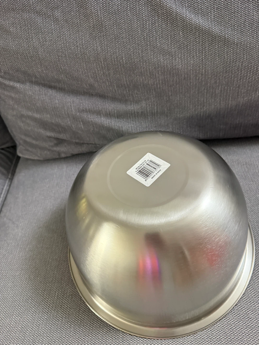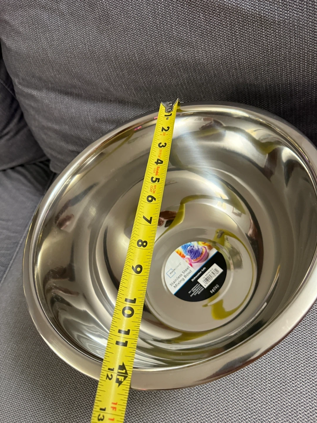 This is a Mainstays stainless steel mixing bowl. It's an 8 quart bowl, perfect for all your baking needs! It is also dishwasher safe