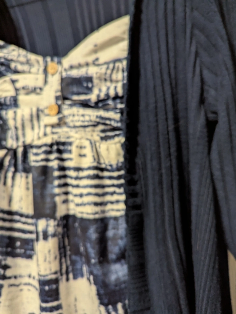 A cute One piece blue cardigan and top set! The top has a unique pattern and button detail, while the cardigan has a ribbed very soft texture .