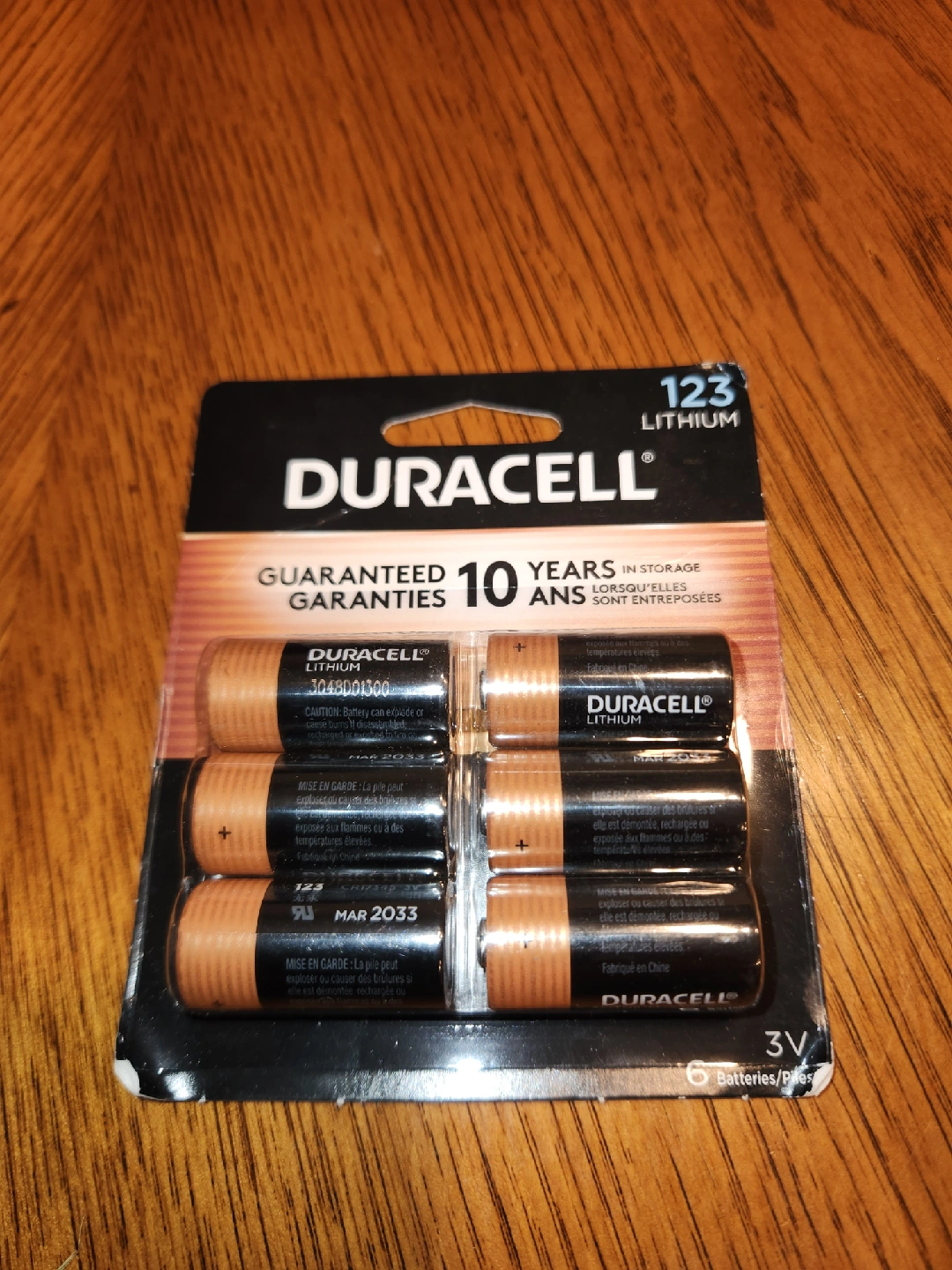 77I'm selling a pack of Duracell 123 Lithium 3V batteries! They are brand new and guaranteed for 10 years in storage. Expiry Date: March 2033