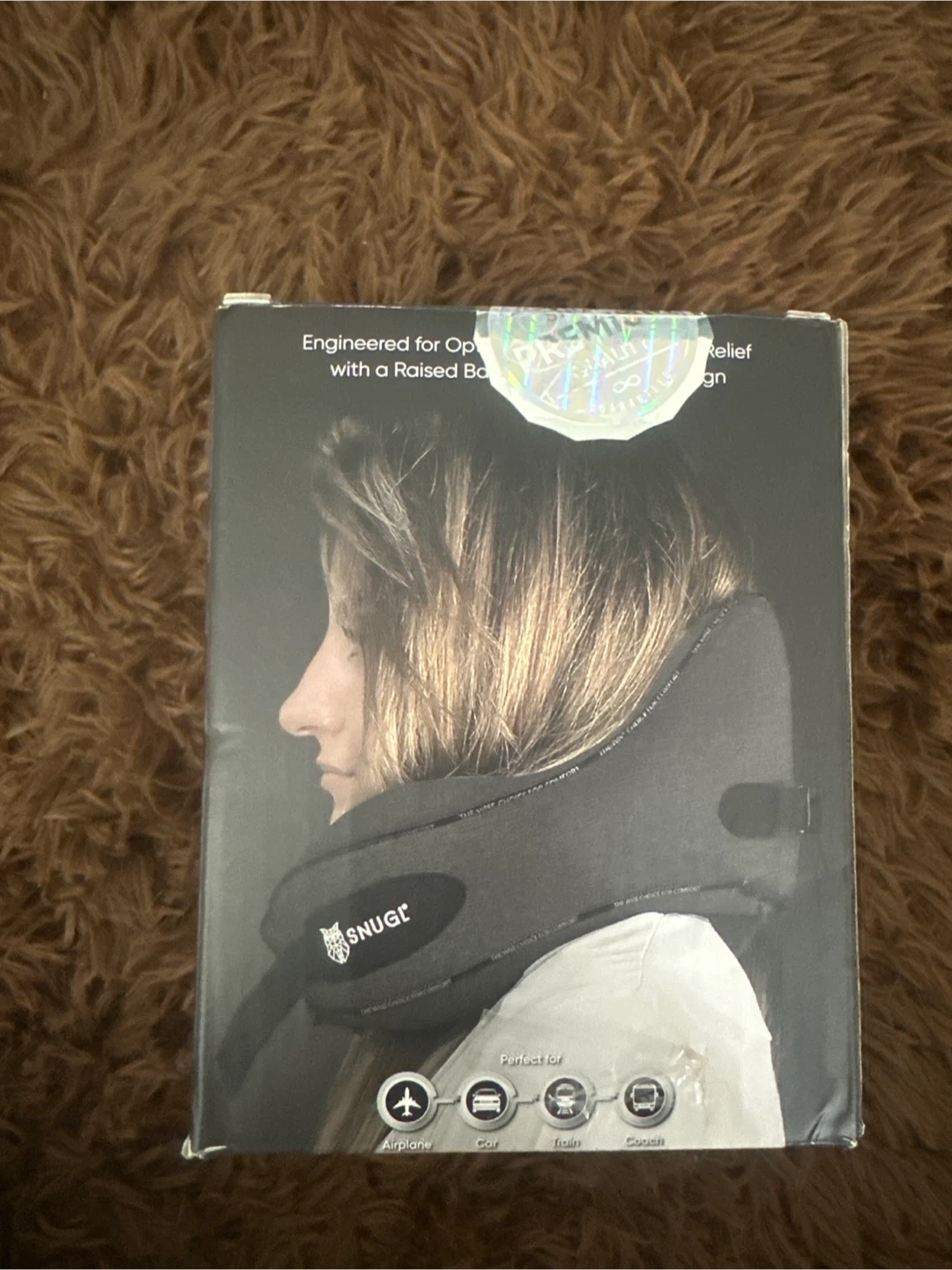 Get ready for your next trip with this Snugl travel pillow! It's teal and comes with its original box and a convenient carrying bag. This pillow is designed for optimal neck support and comfort, whether you're on a plane, in a car, on a train, or just relaxing on the couch