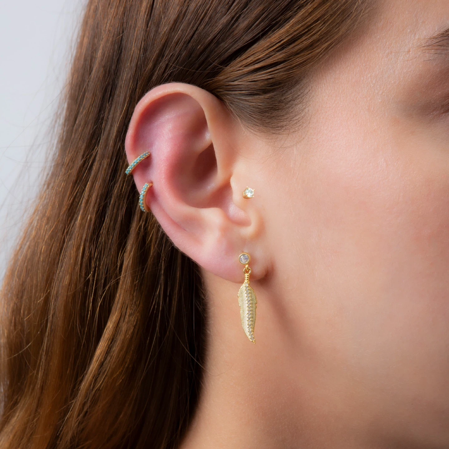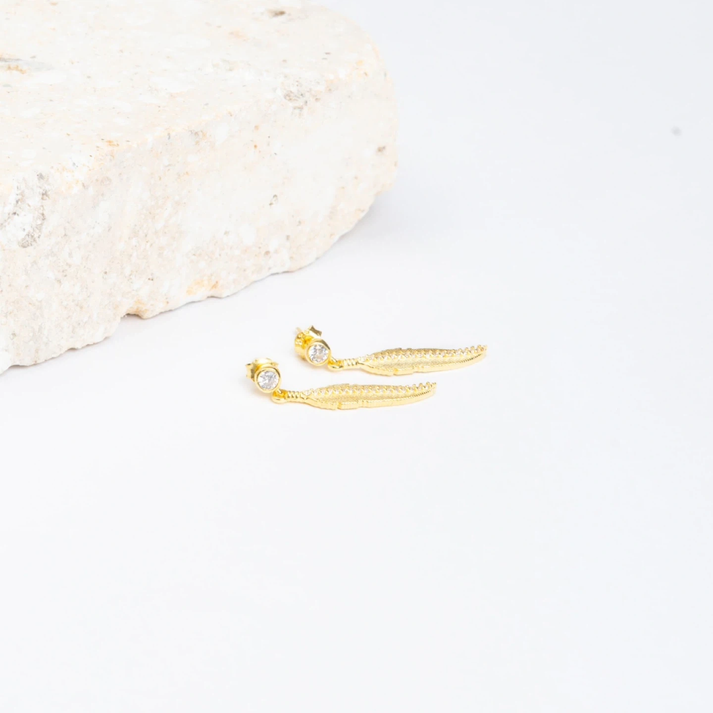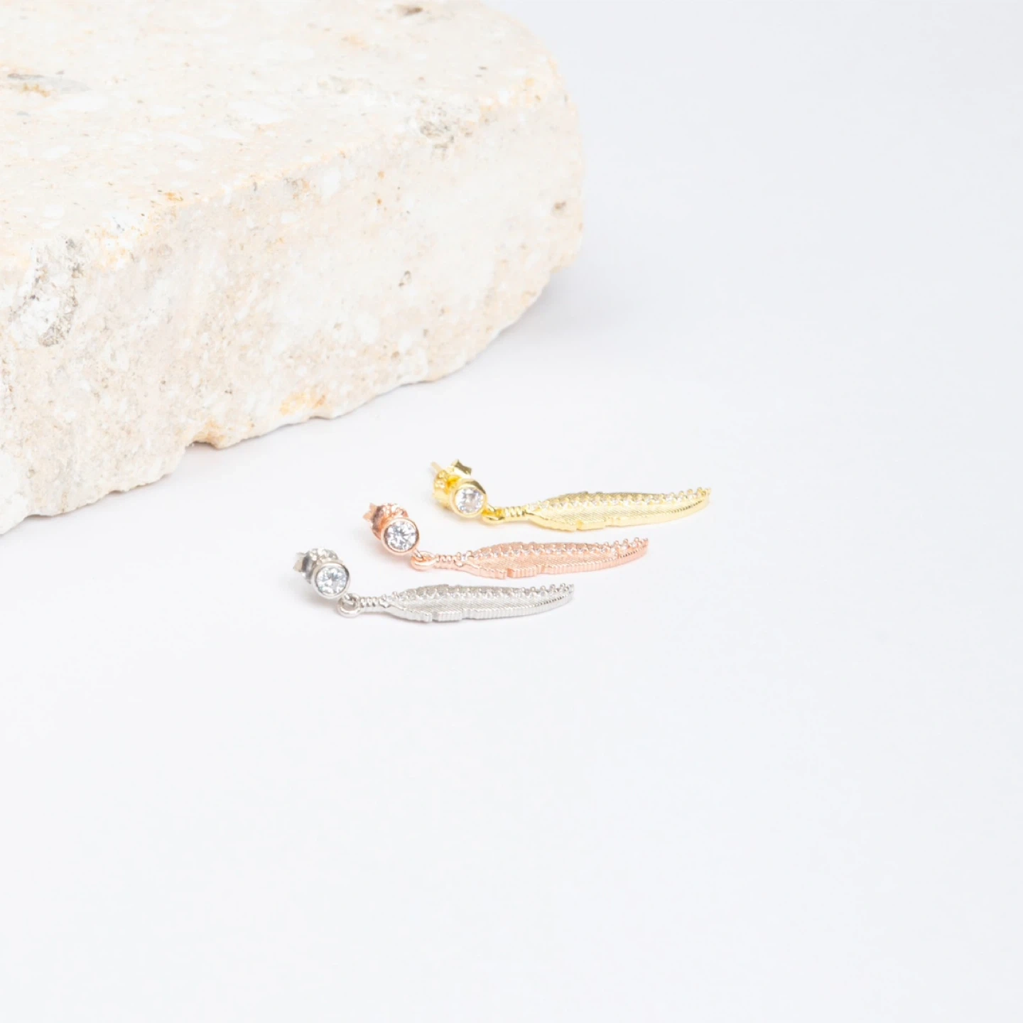 These are some beautiful feather dangle earrings! They're perfect for adding a touch of elegance to any outfit. Available in gold, silver, and rose gold colours