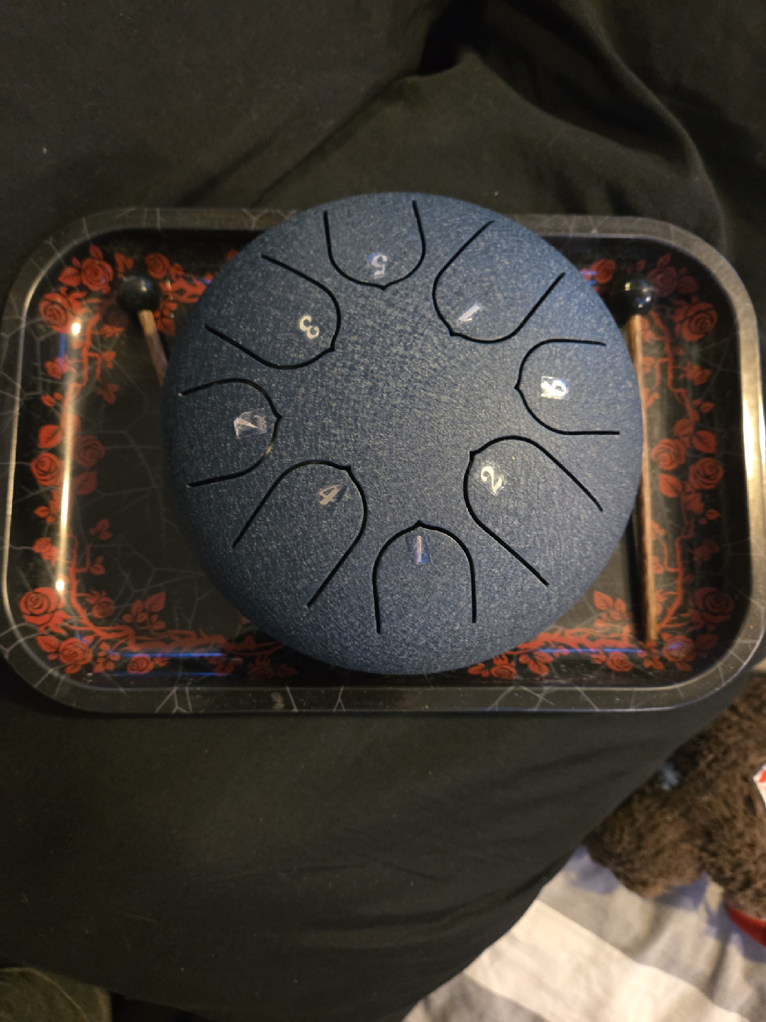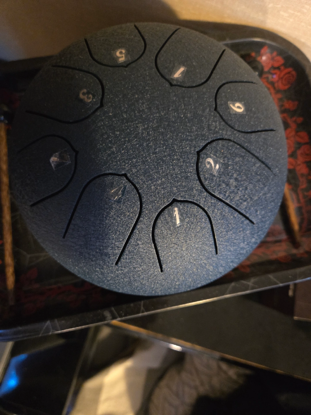 Selling a tongue drum, a beautiful instrument for relaxation and meditation! It's in great condition and ready to bring some peaceful sounds into your life. It's a lovely blue color and comes with mallets to play it with