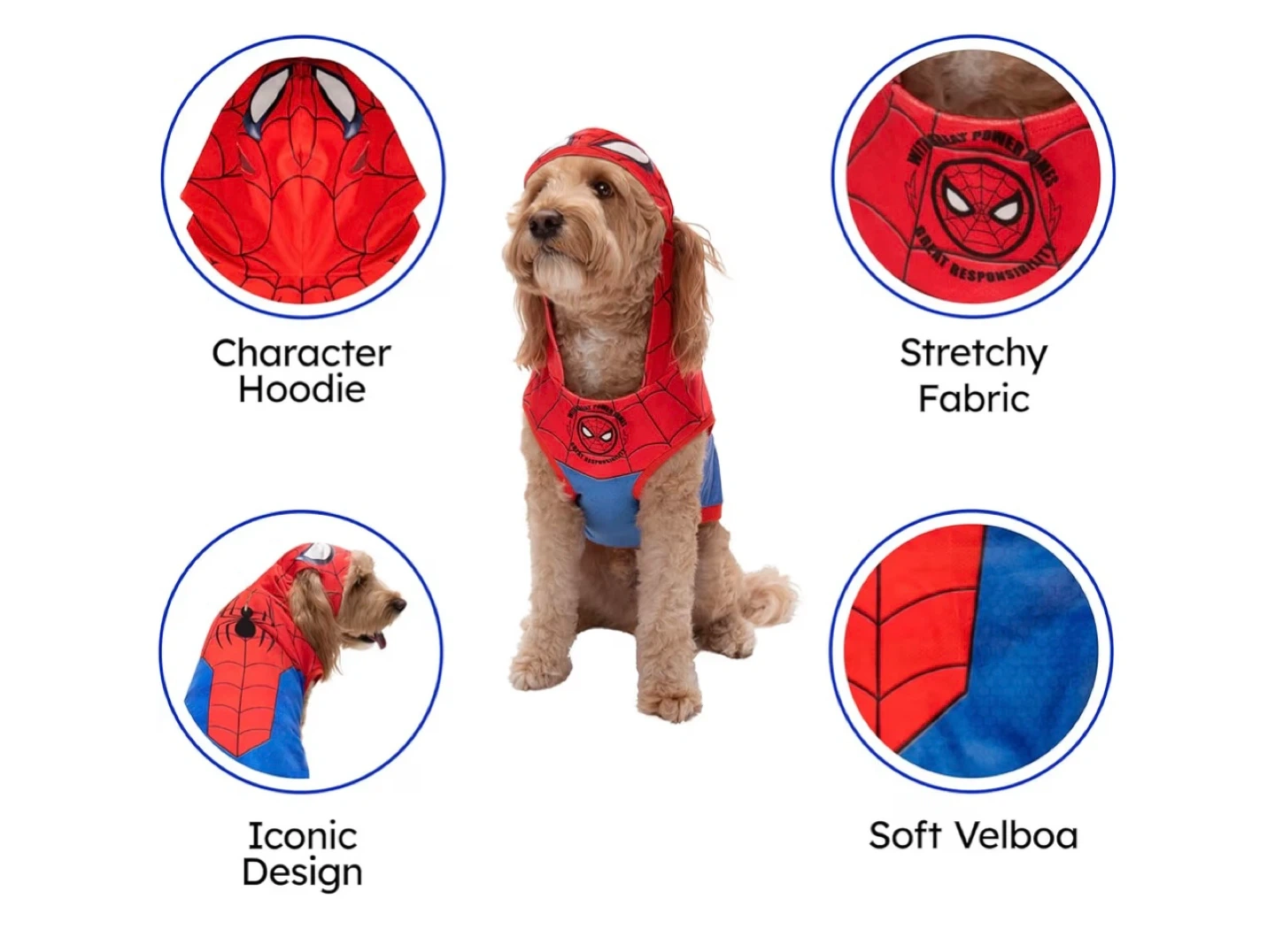 Dress up your furry friend in this adorable Marvel Spiderman dog costume! It features a character hoodie and is made of stretchy fabric by tțyuuuuú