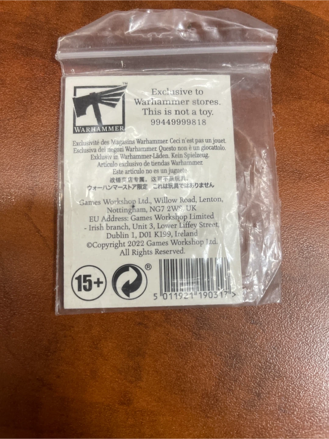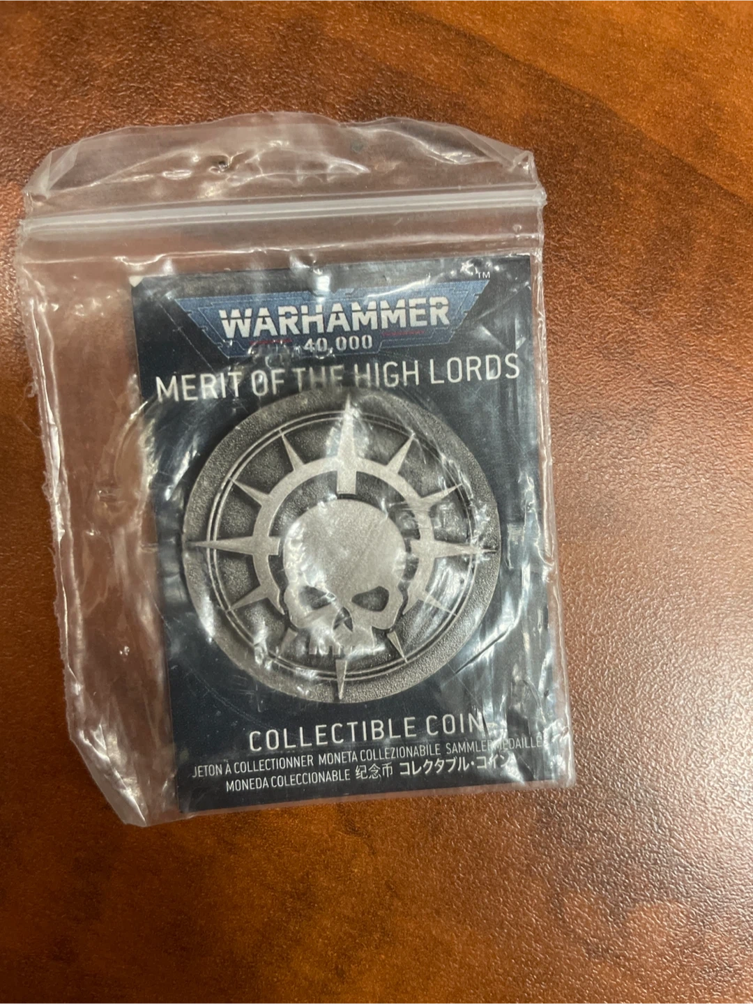 Selling a collectible coin from Warhammer 40,000 called Merit of the High Lords. It's an exclusive item to Warhammer stores. This is not a toy, suitable for ages 15+
