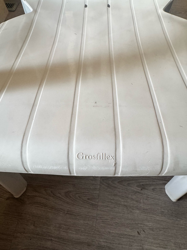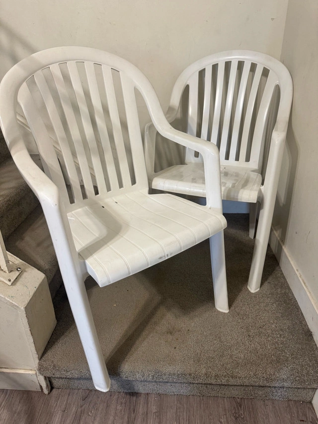 Refresh your outdoor seating with these gently used Grosfillex Pacific Fanback armchairs, known for their stackable design and durable white finish. Constructed of 100% polypropylene with UV protection, the Pacific Fanback is resistant to sunlight, moisture and weathering. Lightweight & Stackable. These chairs have seen some sunny days.