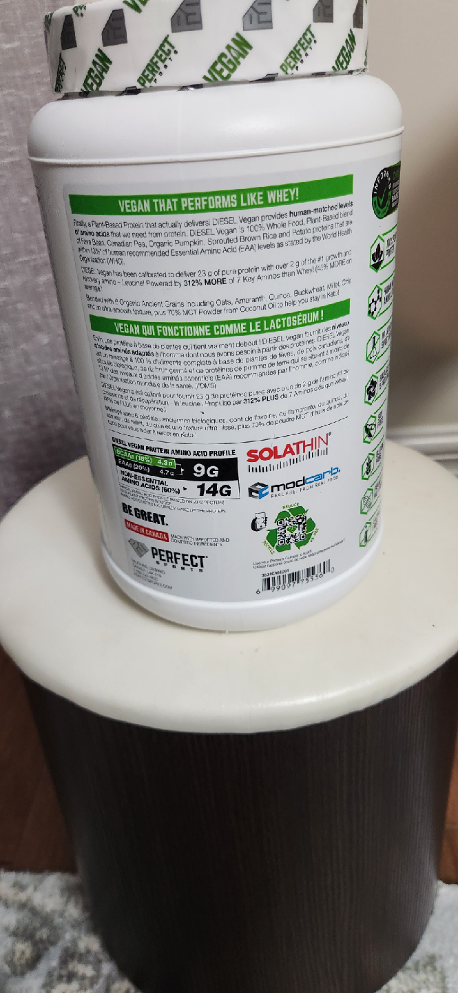 Selling a tub of Perfect Sports Vegan Diesel protein in Chocolate Caramel flavour! It's a plant-based protein blend with 23g of protein per serving.