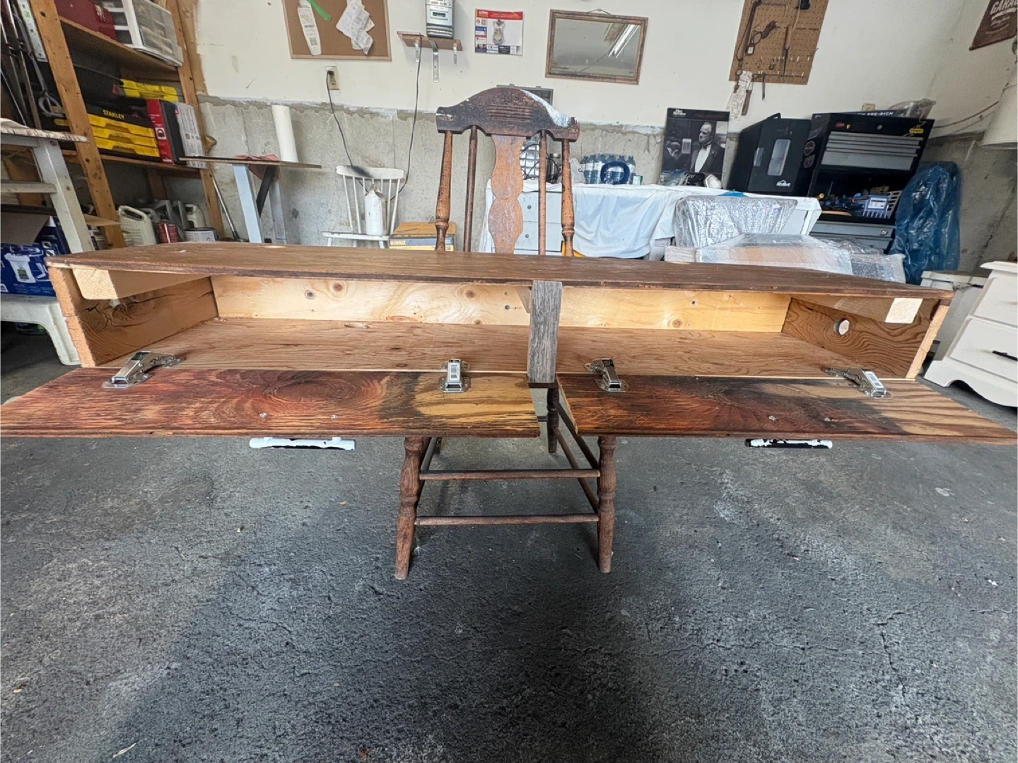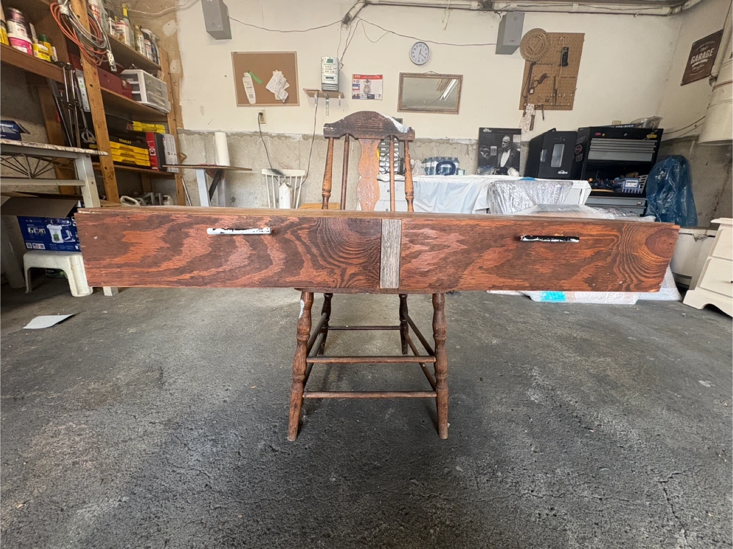 Selling a unique rustic wooden floating shelf . It features a warm, dark brown finish and has two storage compartments. Perfect for adding a touch of vintage charm to your living space!