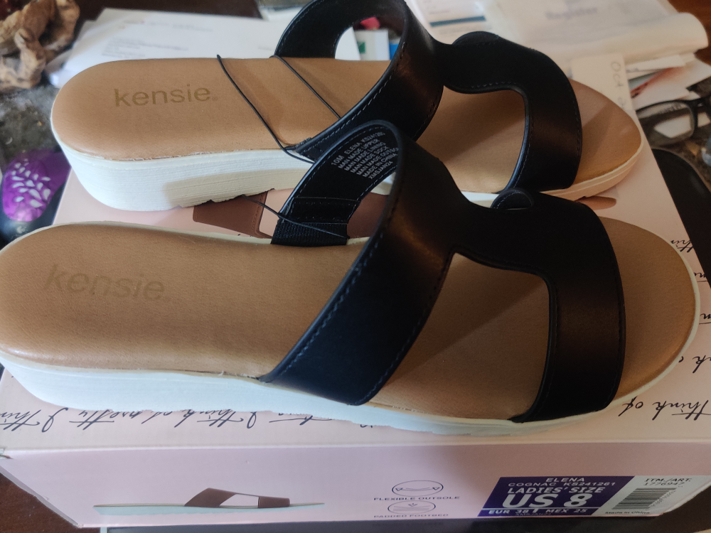 Selling a pair of Kensie Elena sandals in size US 8! They are cognac colored and in great condition. These sandals feature a flexible outsole and a padded footbed for extra comfort. Perfect for a casual day out!