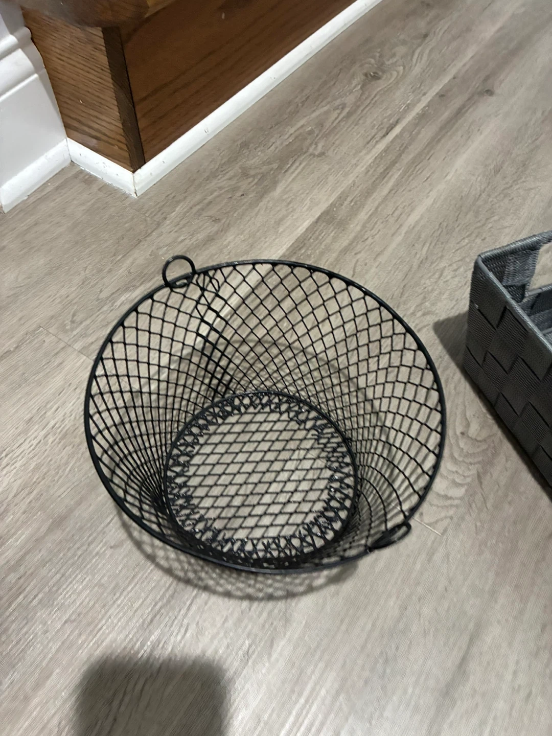 Selling a black wire basket and a gray woven storage bin. Both are in good condition and ready for a new home! Great for organizing your space or adding a touch of style to any room