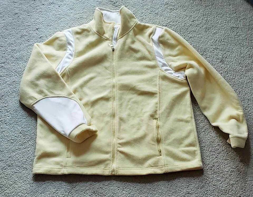 906Light yellow and white jacket. Chest 46 in. Length 26 in. Pick up at 40 Lavery Trail Scarborough M1C4T3 or 280 Donlands Avenue