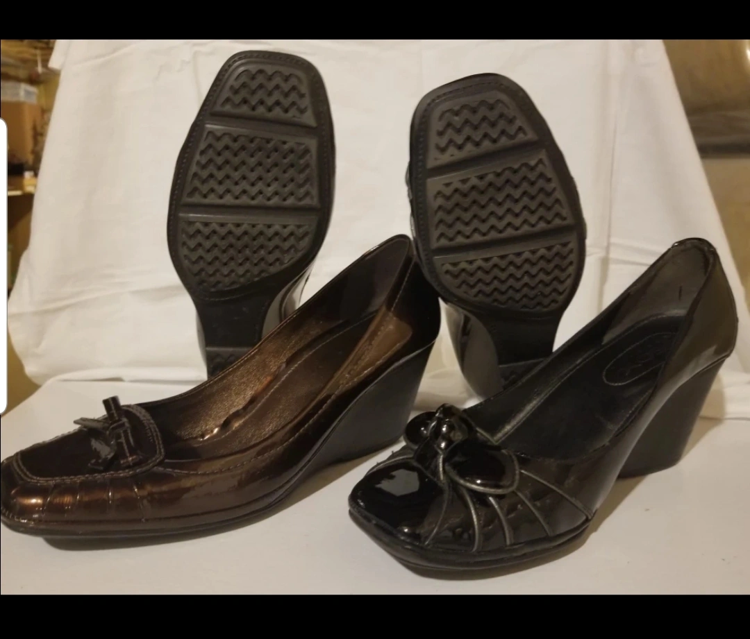 Selling 2 pairs of super confortable Geox wedge heels in brown and black genuine patent leather. They are in great condition and would be a great addition to your wardrobe! Size 39/9 women's. Seeking for $20 each or $30 for both!